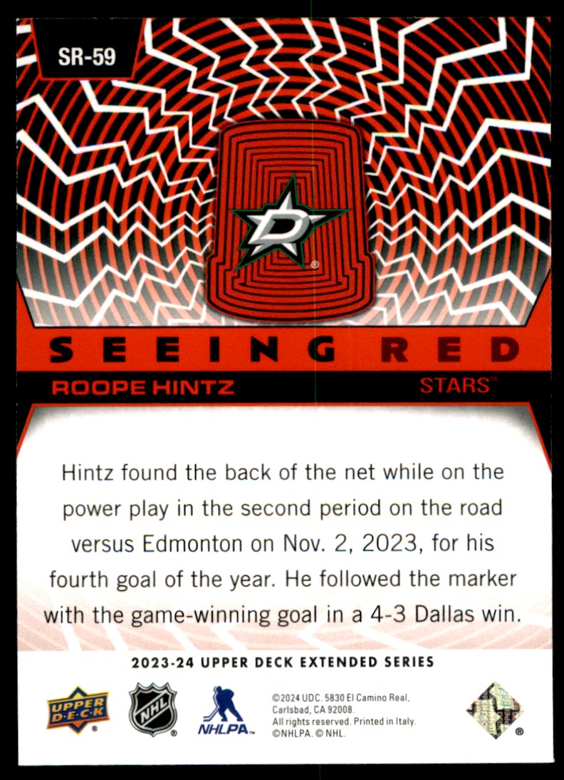 | 2023-24 Upper Deck Extended Series Seeing Red Roope Hintz #SR59 | ||||||||||||||||||