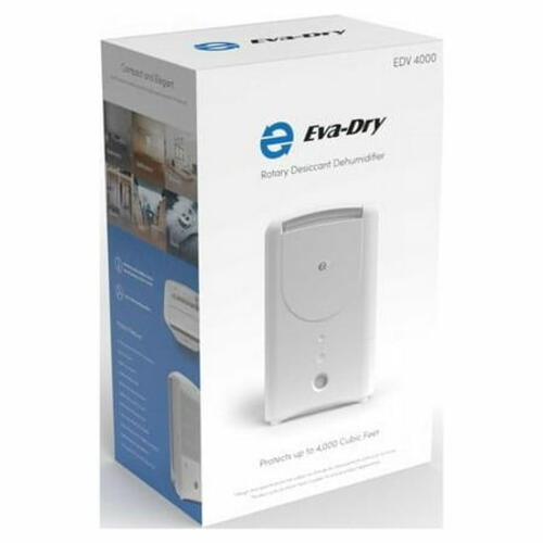 The EDV-4000 is the first home/office dehumidifier to use innovative rotary desiccant technology. This technology allows for high-volume dehumidification without requiring a compressor. It is safer than compressor-based systems and designed for low-maintenance operations. This dehumidifier effectively removes moisture from the air even in low temperatures (34 degrees F. - 104 degrees F.). The Eva-Dry 4000 dehumidifier is effective in medium to larger spaces up to 4000 cubic feet, including large closets, bedrooms and baths, cabins, large RVs, boats, basements, and offices.