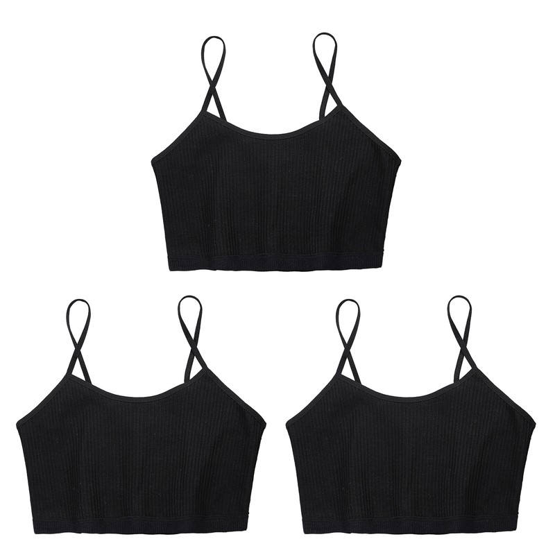 Spaghetti straps vest for kids girls, ribbed design, solid color, cropped length.
