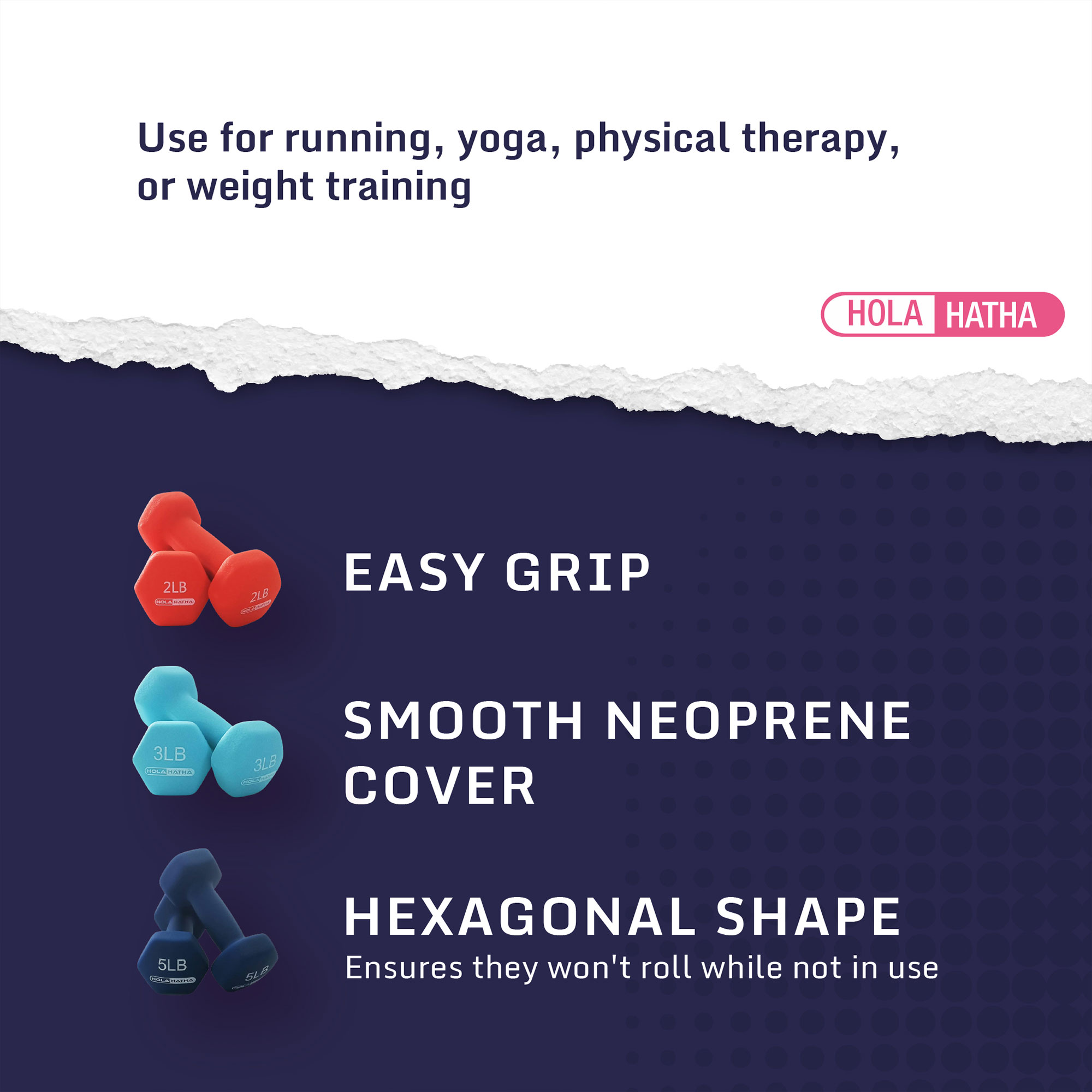 • Hex design and non-slip coating ensure your weights don't slip, slide, or tumble around while you exercise