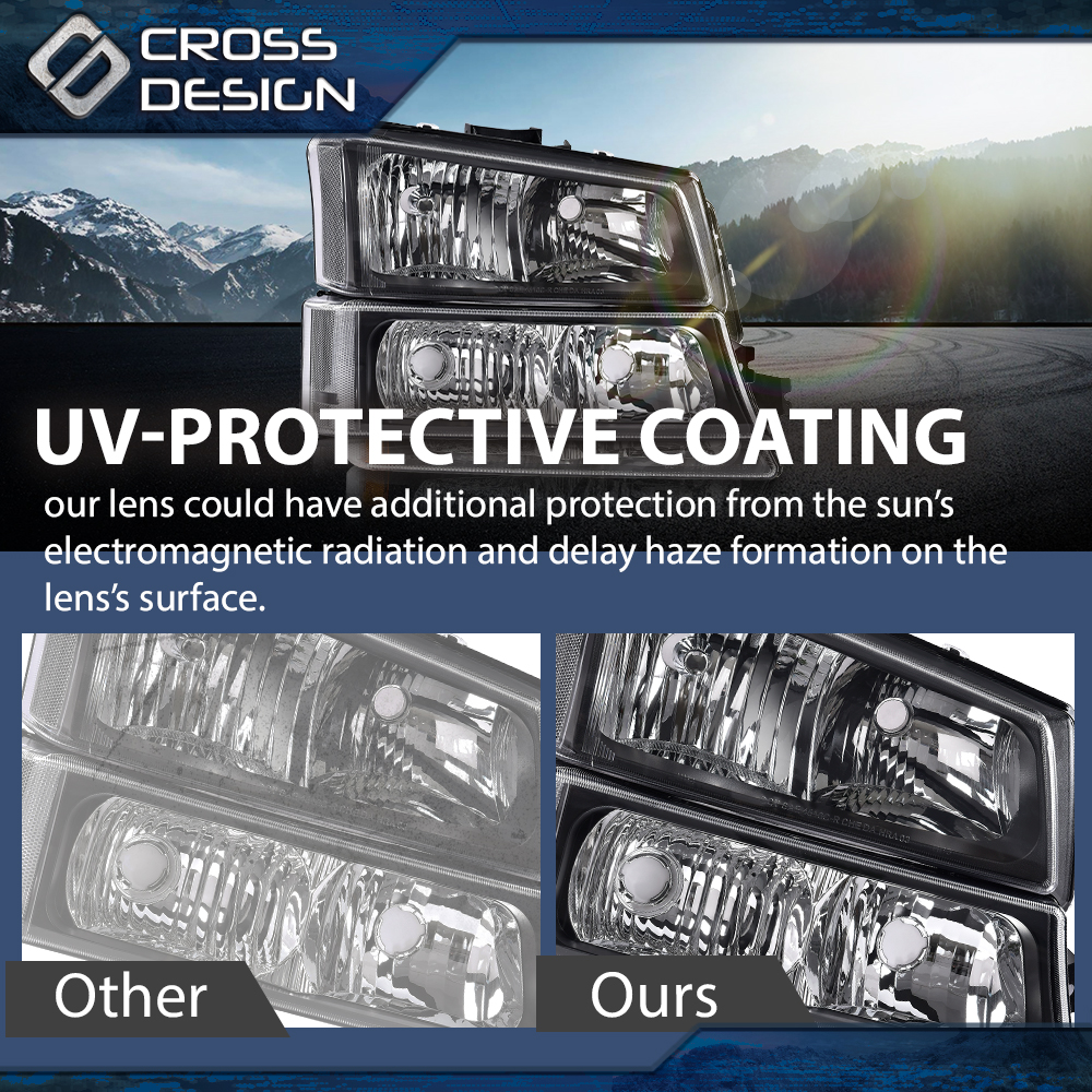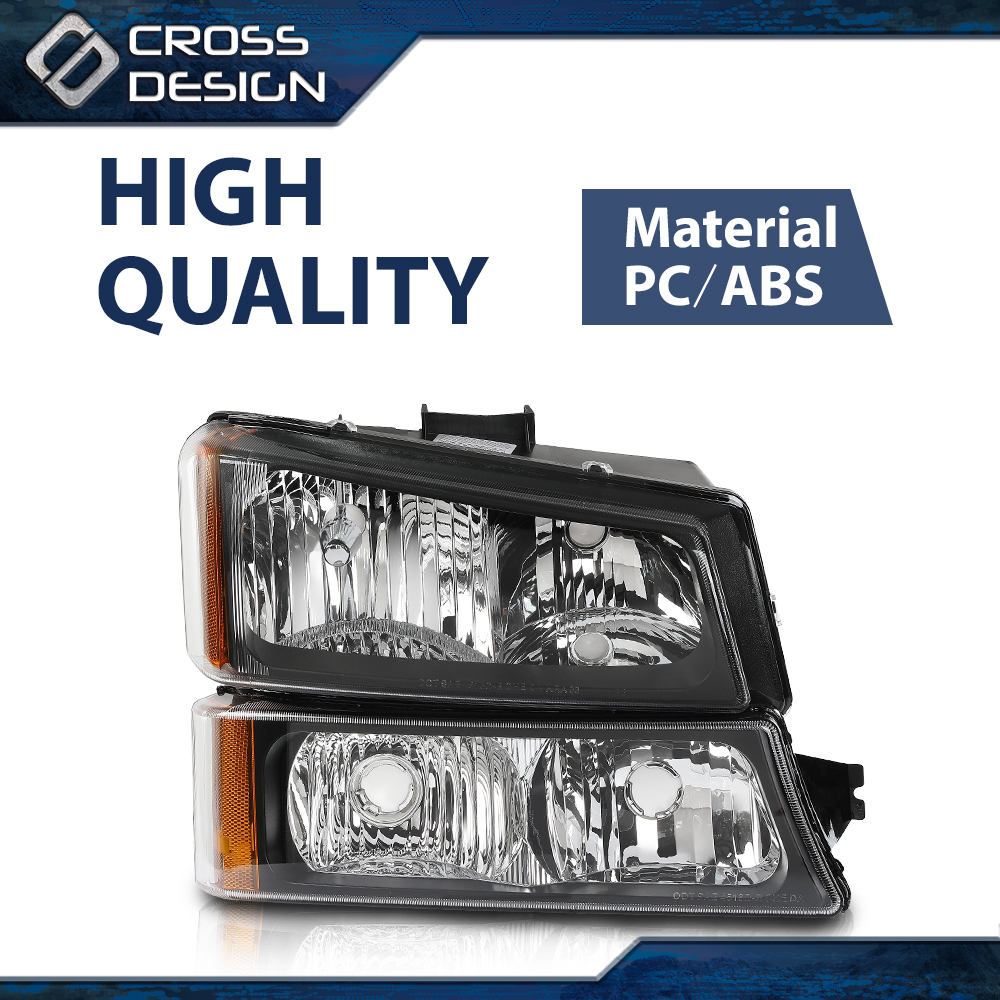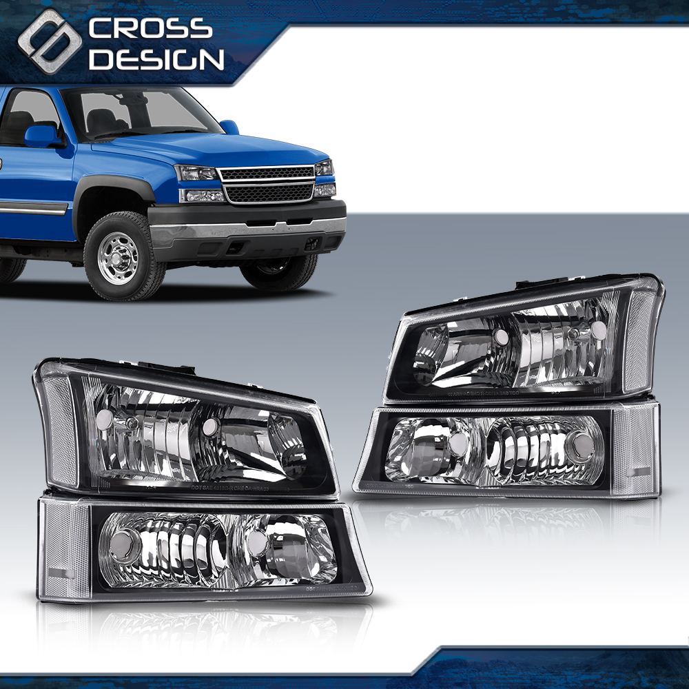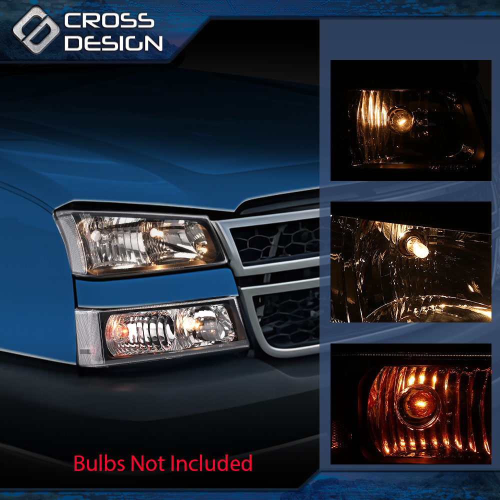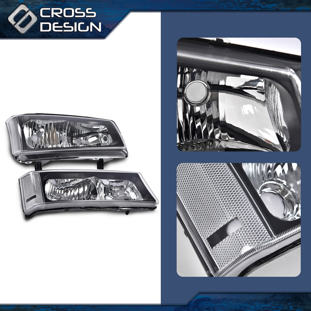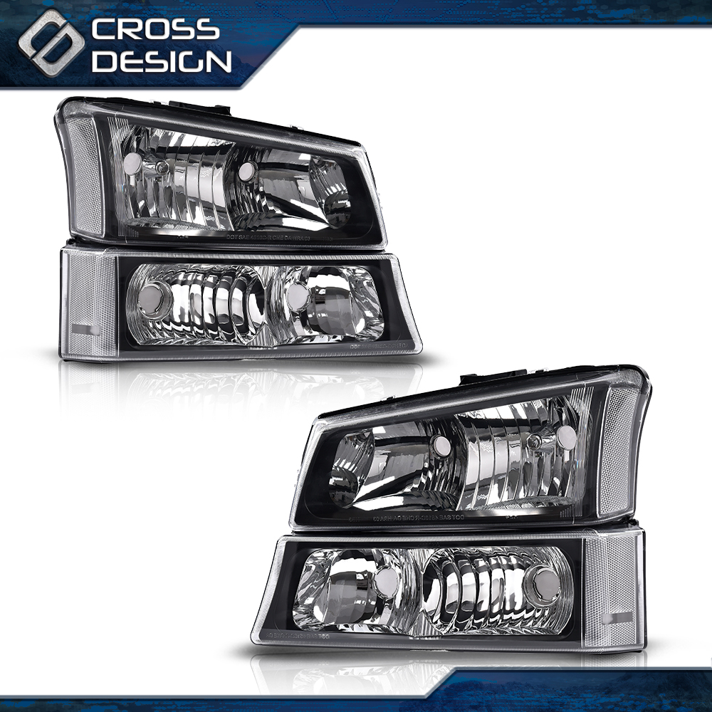 Black Headlights Signal Bumper Lamps Fit For 2003-2007 Chevy Silverado Avalanche