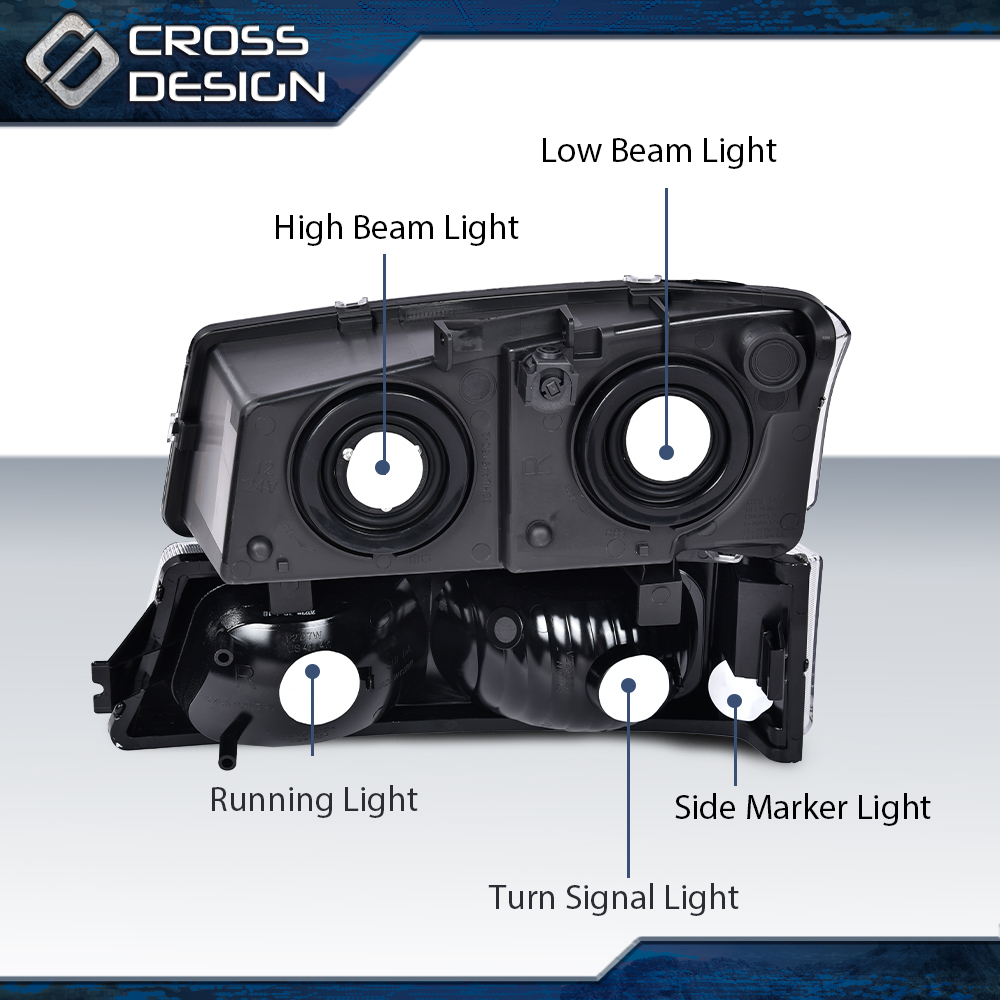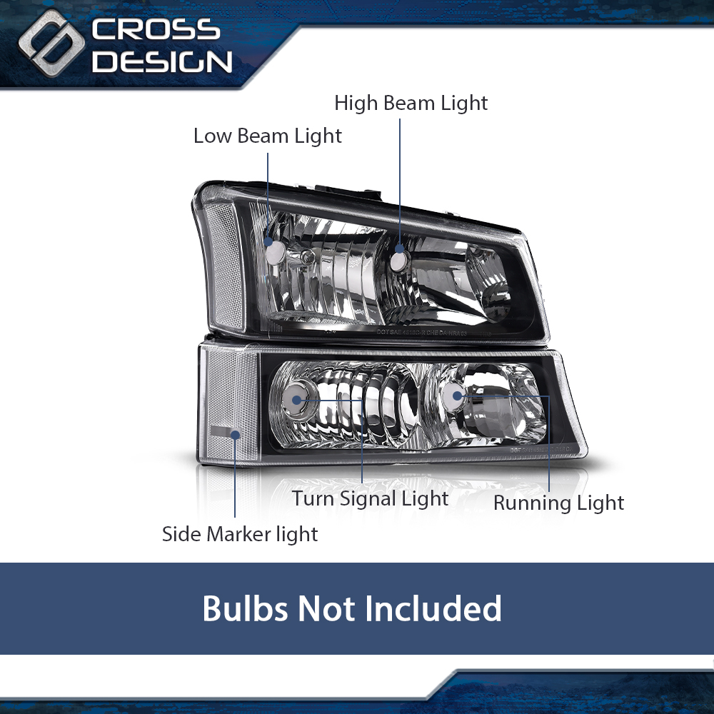 The item is 100% brand new in original box Comes with 1 pair of driver and passenger side headlights and bumper lights Black housing clear lens headlights and bumper lights with amber reflector Bulbs are not included - use stock bulbs, sockets or wiring for installation Professional installation is highly recommended