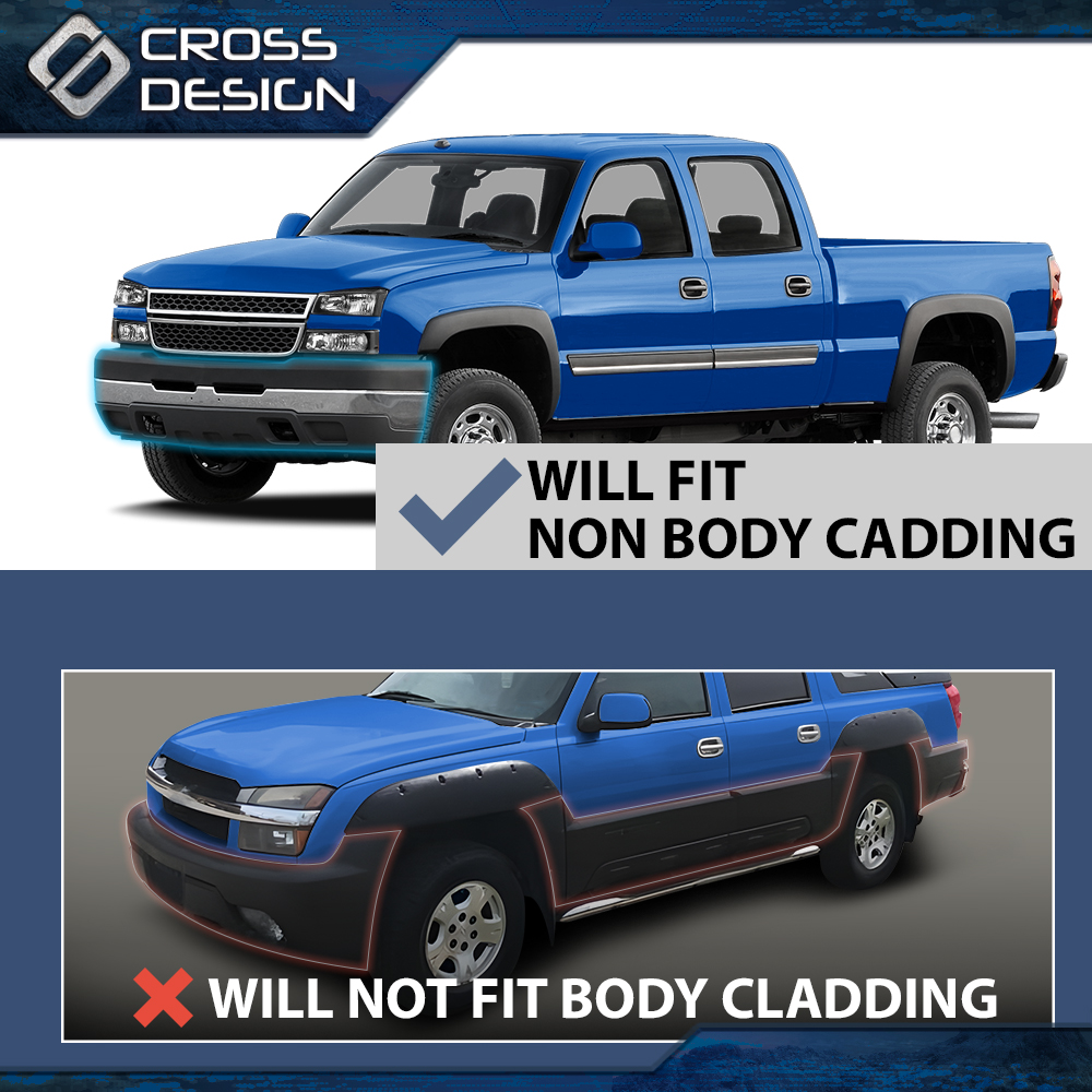 For 2003-2007 Chevy Silverado models only (Only fits on old body style for 2007 models) For 2002-2006 Chevy Avalanche w/out cladding models only