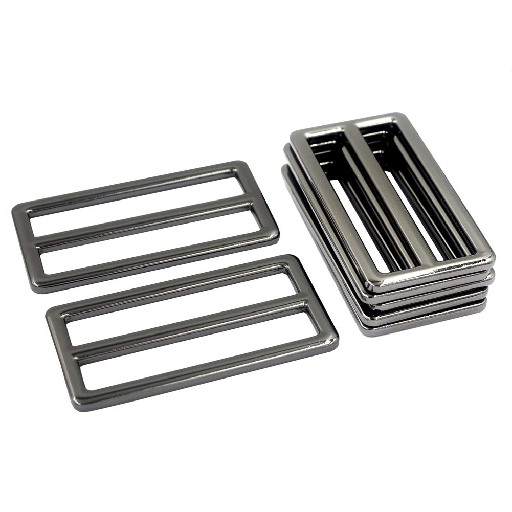 These tri-glide buckles and rectangle buckles are made of rust and corrosion resistant zinc alloy material,not plastic Max inner width is 2.0"(50mm) Total have 2 color to choose,silver,gun metal,pls choose your color Use special electroplating process to make really shinning color and smooth finish buckles The actual product color is more fantastic you see on picture Suitable for 1-1/2"-2.0" width webbing or strap Used for backpacks,handbag webbing,pet collars,leather belt and so on Package included: 10pcs 2" same color tri glide buckles