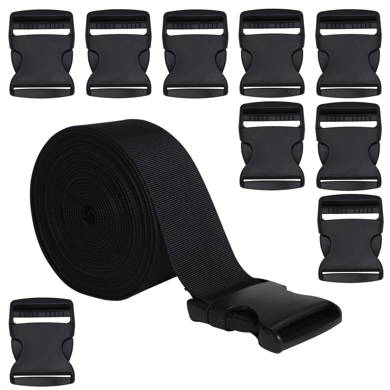 Webbing strap is made of high quality heavy nylon material, it is durable and useful, more quick-release buckle is convenient to use and quickly adjusts to desired length.Can be widely used for collars, leash, bags, straps, belts, bracelet, harnesses, and backpacks, etc. Description Material: nylon+plastic Color: black Length: 10 yards/approx. 9 meters in length Dimension: webbing strap 50mm =2 Inch wide, 10 yards length; plastic buckle dimension:3.15" L ×2" W; Package Content: 10 yards length webbing + 10 pcs black plastic buckles