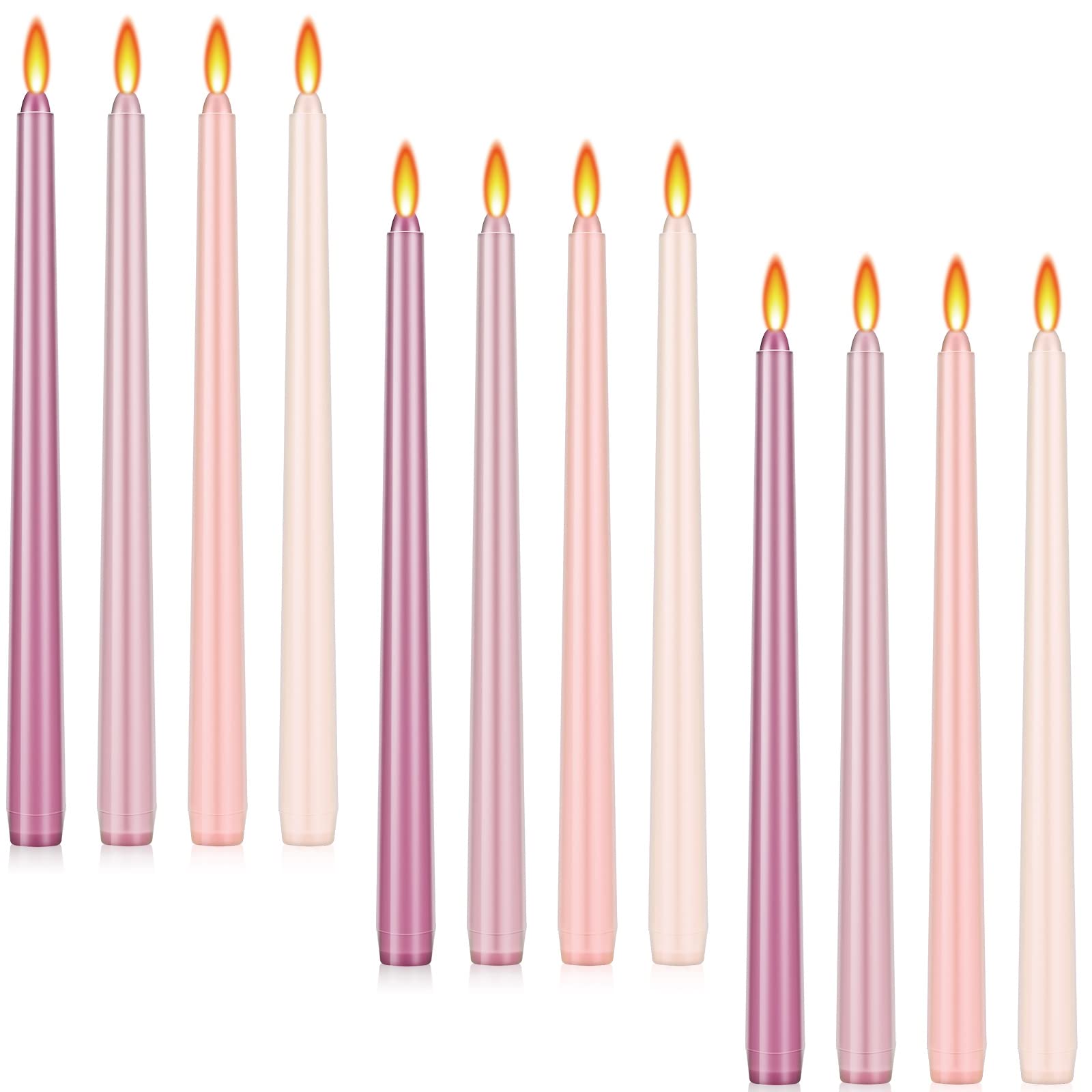 Full of ambience: If applied to bathing and dining to increase the sense of atmosphere, these dripless cone candles are very suitable for creating an elegant or romantic atmosphere. Sufficient quantity and elegant : They can meet your decor need. With a universal fit, these tall candles can fit most candlesticks and candelabras. Specification: Color: as the pictures shown Quantity: 3 pack Package content: 12 x Taper candles Note: Please allow 1-2 mm error due to the hand measurement. Manual measurement, please allow slight errors on size. The color may exist a slight difference due to different screen displays.