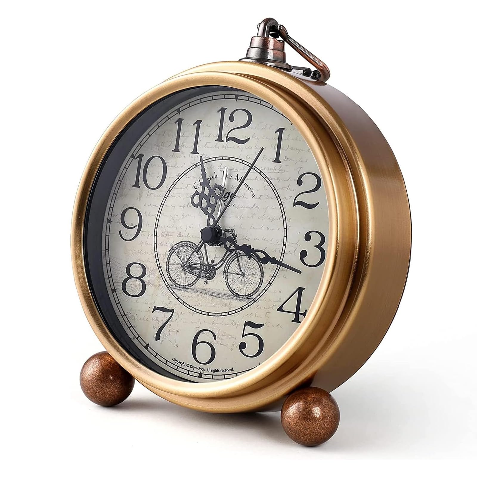 Product Features: "Non-Ticking",a very low humm at night, so you do not need to worry about the constant ticking of regular clocks when you need some peace and quiet to concentrate on your work or enjoy a full night of undisturbed sleep. Easy to use, easy to read, perfect for kids or seniors Specifications: : Silent Desk Clock Function: Alarm Movement: Smooth Sweeping Quartz Powered by: 1x AA carbon zinc battery (Not included) Product Dimensions: 13.3cm x 15.5cm x 4.5cm /5.1*6.1 *1.8 in Package includes: 1 x Silent Desk Clock Note: 1. The two buttons to set time and alarm are designed that way. Please don't mistake the special design for the sign that they're broken or of poor quality. 2. Pls. use one AA zinc carbon battery to power the clock for alkaline battery or rechargeable battery which may damage the clock movement or shorten the life span of it, as well as the the time may not be accurate. 3.There are slight difference between the picture and the real item caused by light brightness.