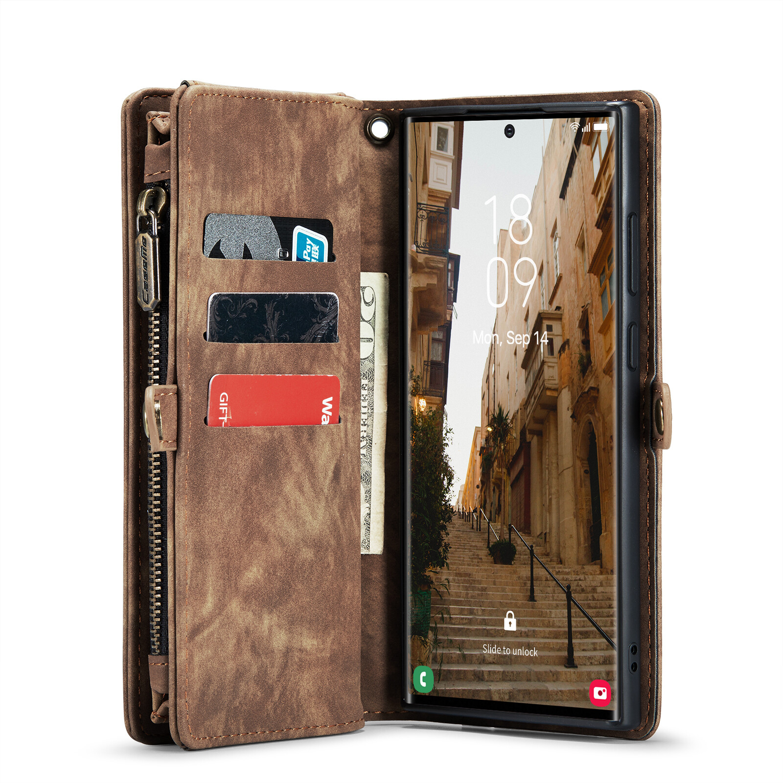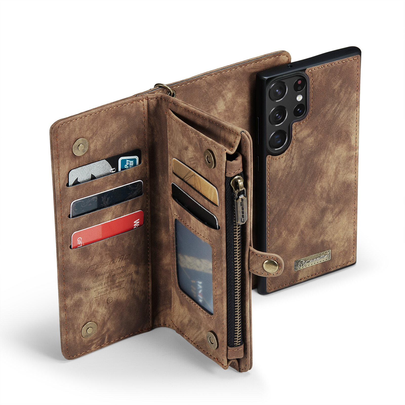 【2 in1 Detachable Folio Wallet Case】Strong magnet isn't influence digital devices and credit cards. Not only use as a wallet case but also can remove the single case from the wallet to feel more light.