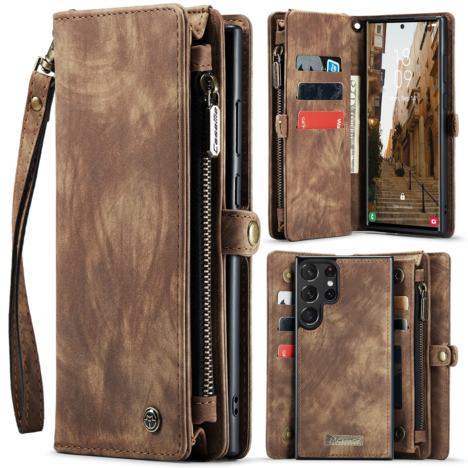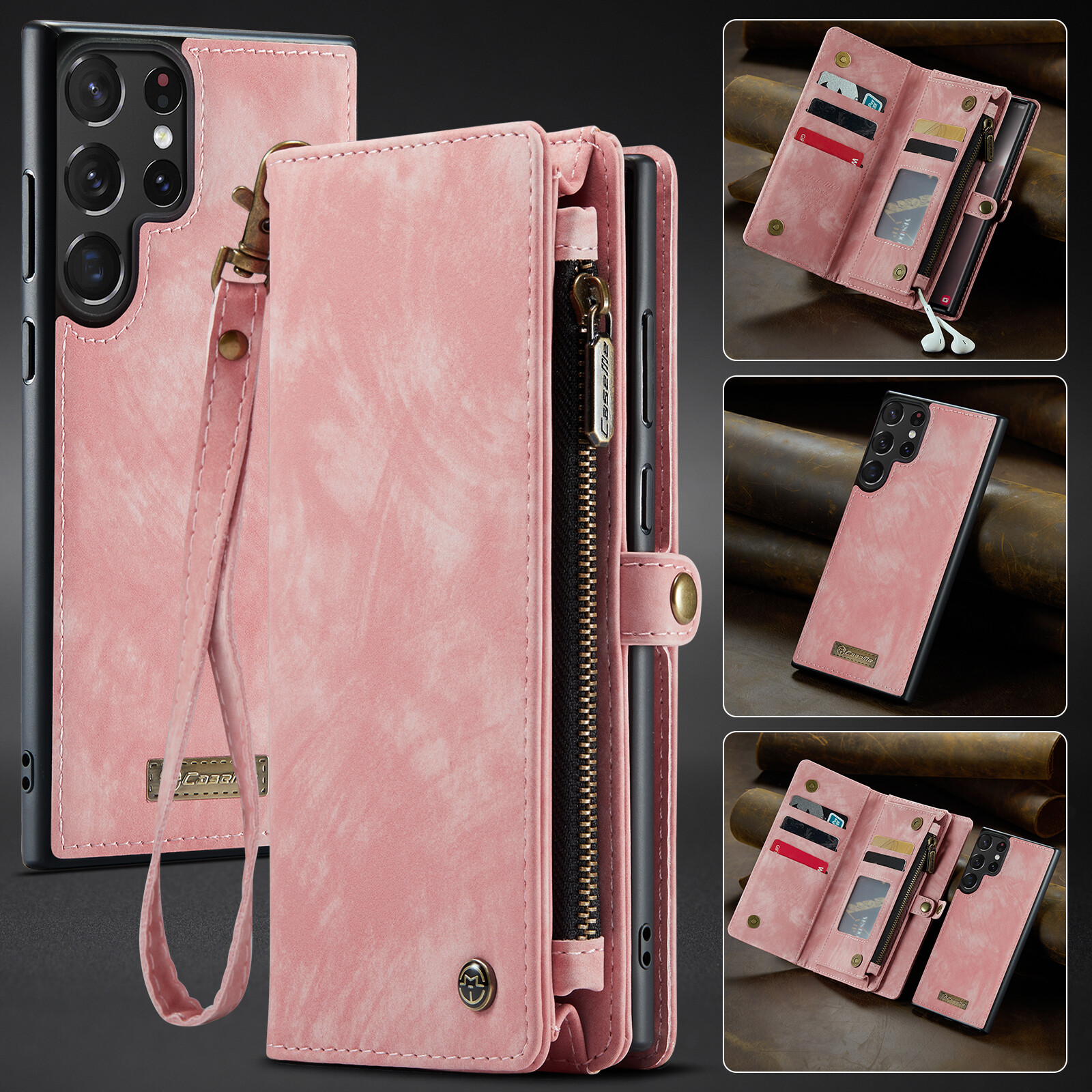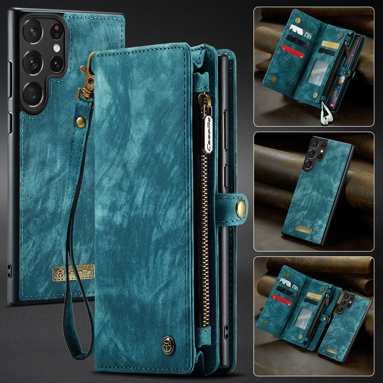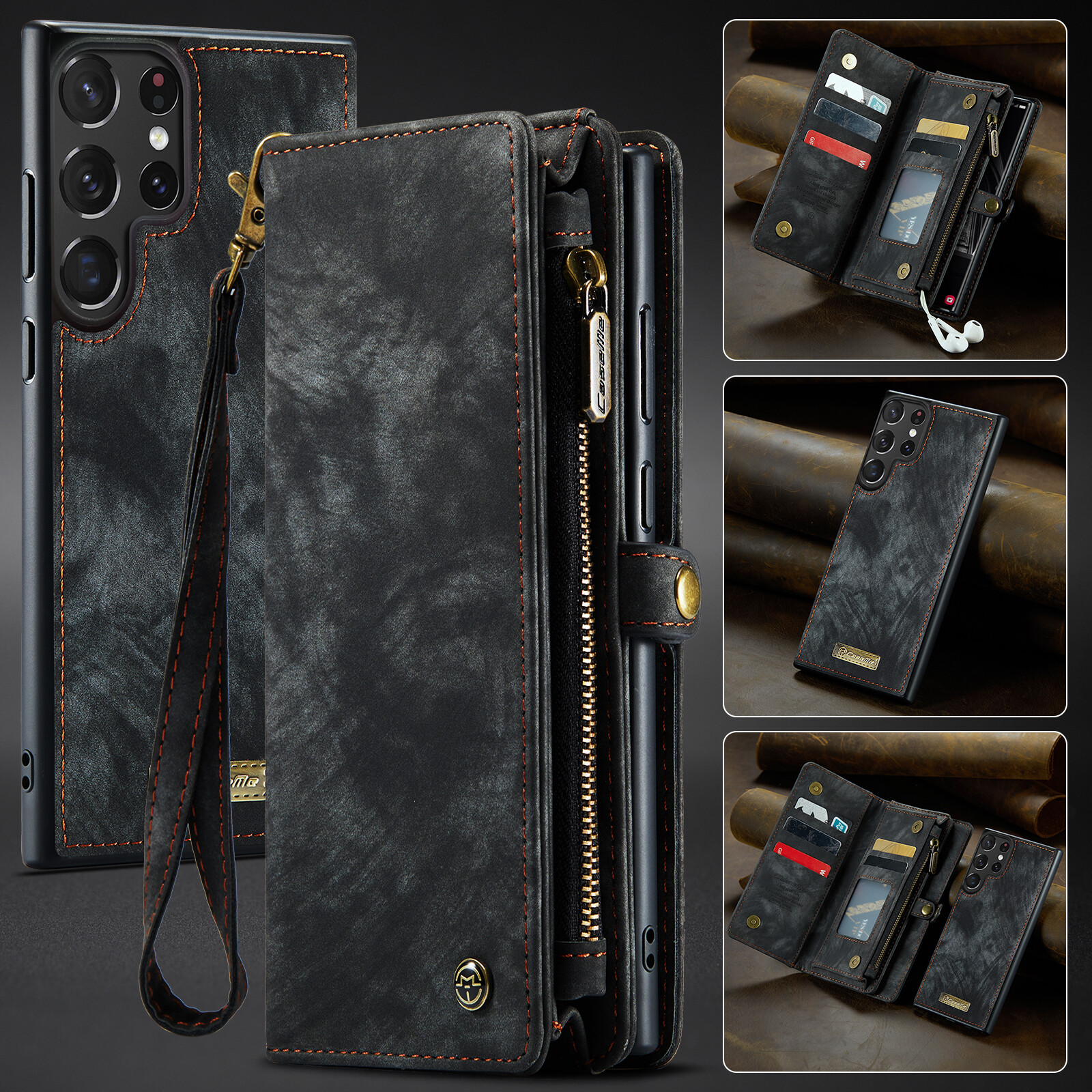 Durable 2 in 1 Detachable Card Slot Wallet PU Leather Case Magnetic Shockproof Phone Cover With Lanyard Strap For Samsung Galaxy S24 S23 Ultra S22 Plus S21 FE S20 Note 20 Ultra Note 10 Plus