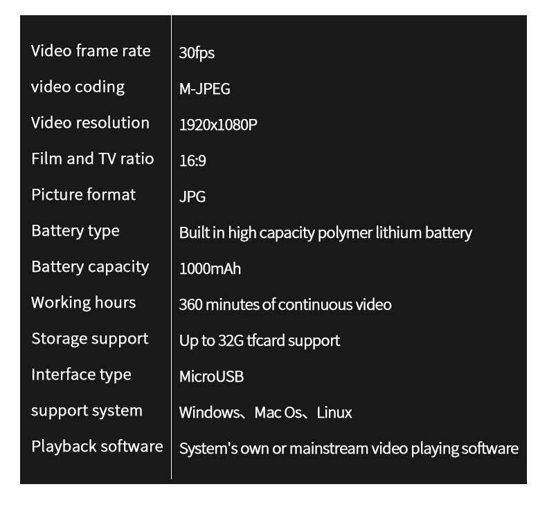 ▪It is very easy to use, because it has only one operation button, it can be used out of the box without any complicated settings or configuration. After pressing the button, recording will start automatically and stop when the button is pressed again. You can connect to the computer via card reader to view video files and pictures.