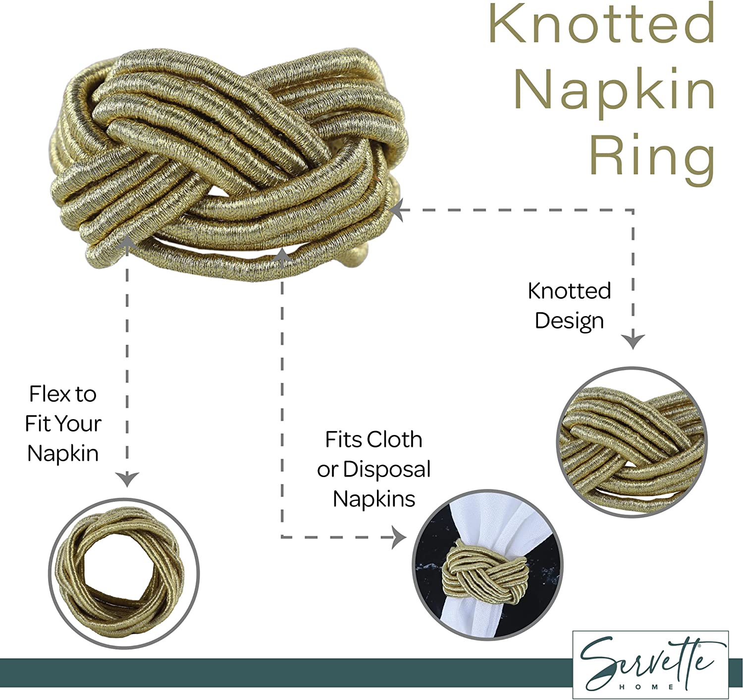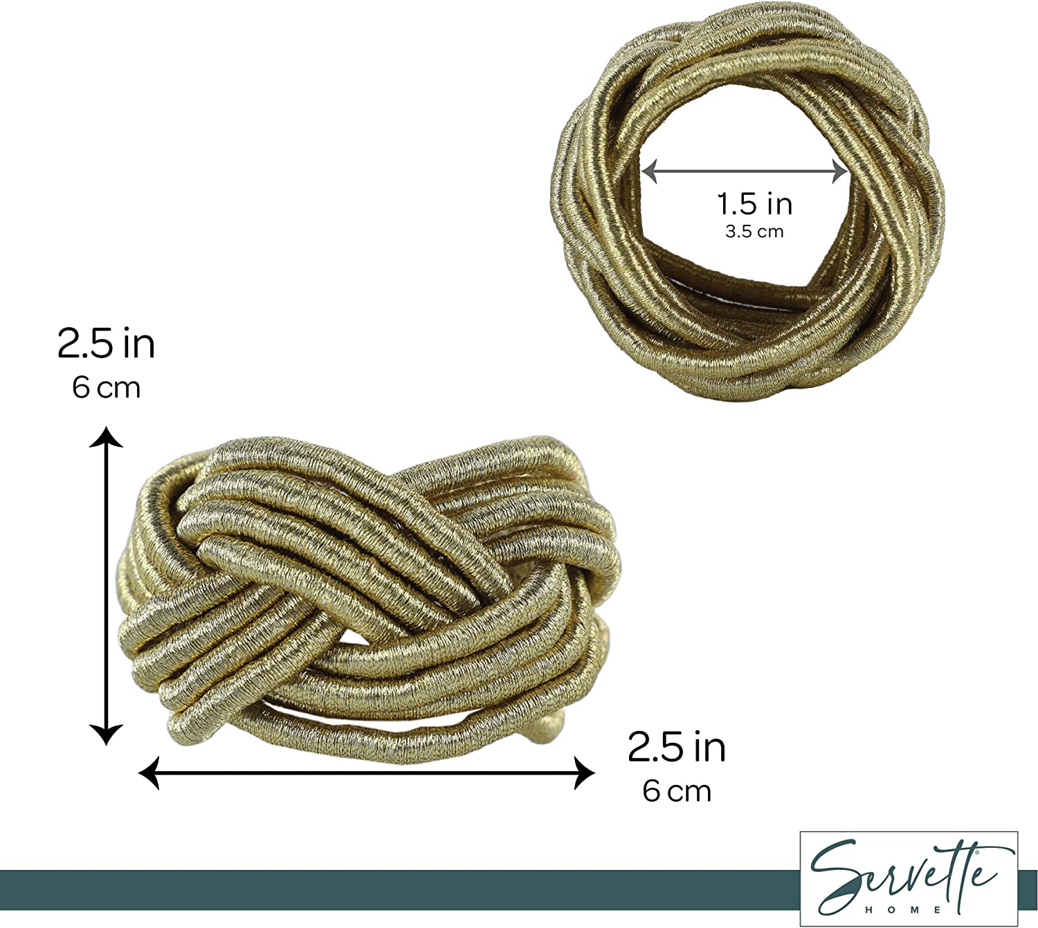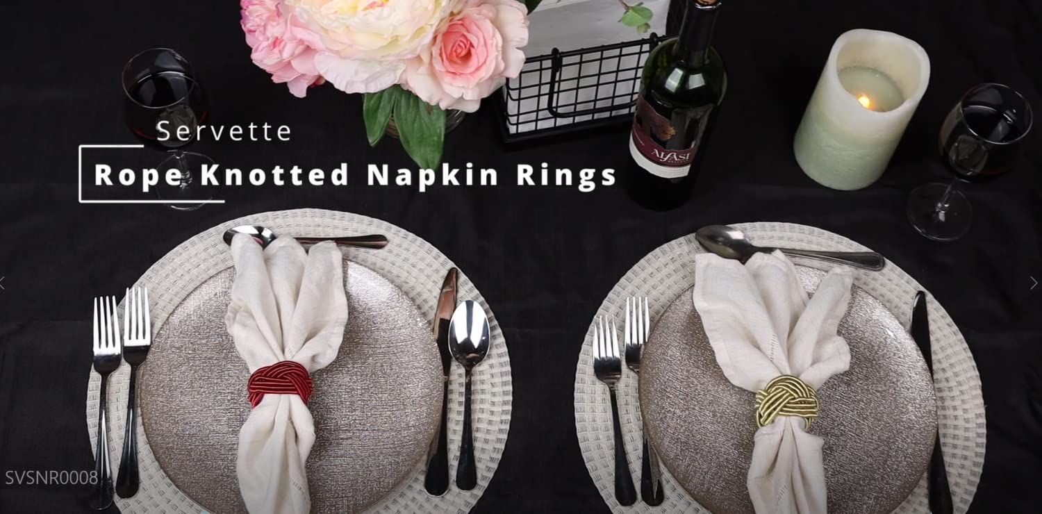 Bring a bohemian or natural touch to your tabletop décor with this classic rope napkin rings set. The Bohemian Rope napkin rings are perfect colors for Christmas Parties or other events such as weddings and banquets. They are made of gold rope and look stunning with both cloth or disposable paper napkins. Perfect for Rustic or Elegant events. The 11.2 ounce knotted rope napkin rings will fit right into any décor. You will love these elegant napkin rings at your next dinner, celebration, wedding, Christmas, New Years, Thanksgiving party and more. Also makes a great housewarming or hostess gift. Bring a bohemian or natural touch to your tabletop décor with this classic rope napkin rings set 5.3 ounces.
