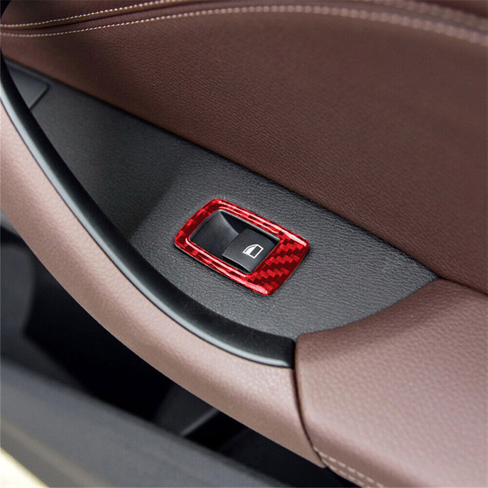 2Pcs For BMW X1 F48 Red Carbon Fiber Interior Rear Window Control Cover Trim