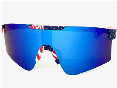 - American Flag Frame with Blue Mirrored Lens (4 Pieces)