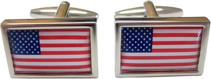 Mens Silver - Plated American Flag United of America USA Old Glory Cufflinks Cufflink