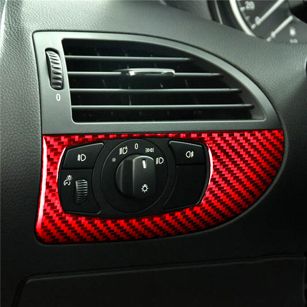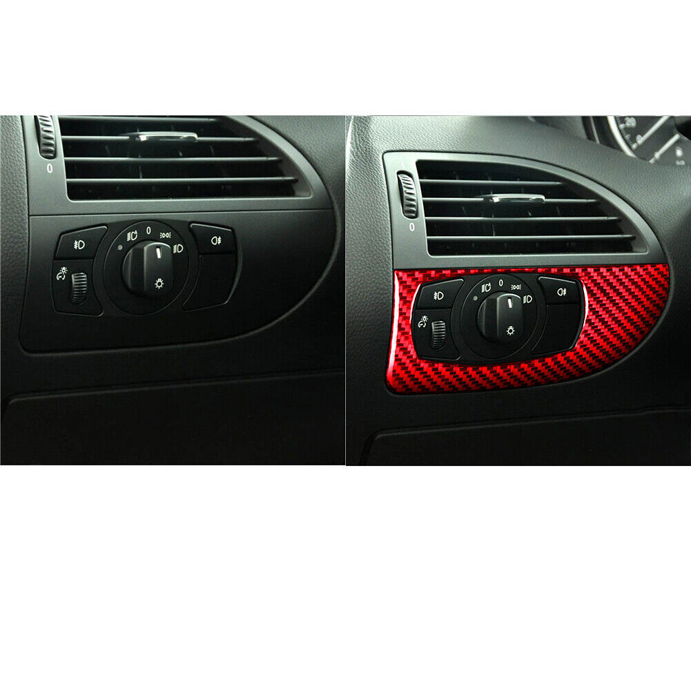 Red Carbon Fiber Interior Headlight Switch Cover Trim For BMW 6Series M6 2004-10