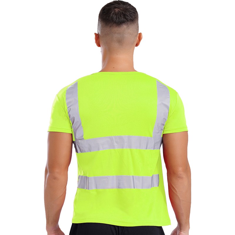 Men’s round neck short sleeve T-shirt with reflective stripes ensures you’re always visible in low-light environments.