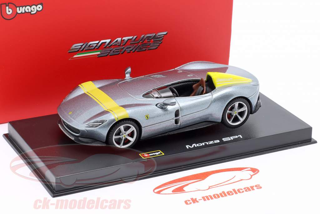 | Ferrari Monza SP1 Baujahr 2019 silbergrau metallic / gelb 1:43 Bburago Signature | Ferrari Monza SP1 year 2019 silver grey metallic / yellow 1:43 Bburago Signature |