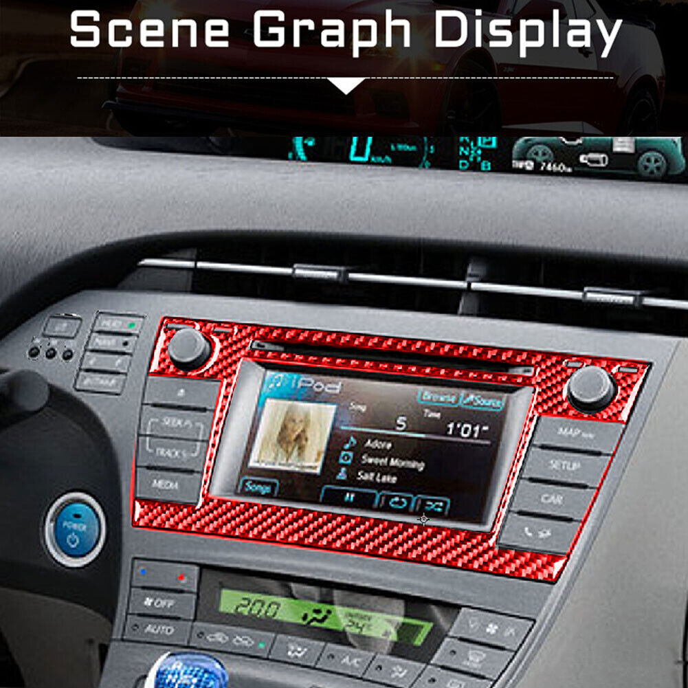 Red Carbon Fiber Interior Navigation Display Cover Trim For Toyota Prius