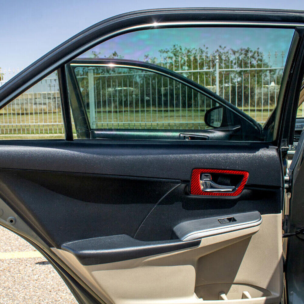 4Pcs Red Carbon Fiber Interior Door Handle Cover Trim For Toyota Camry 2012-2014