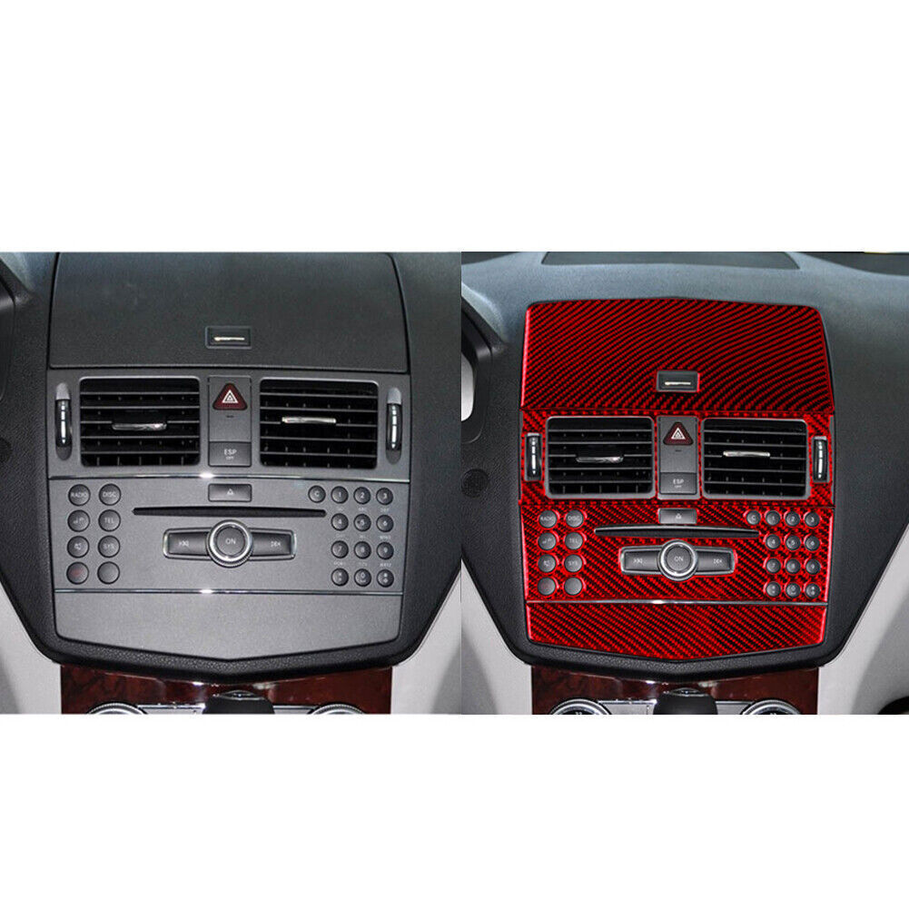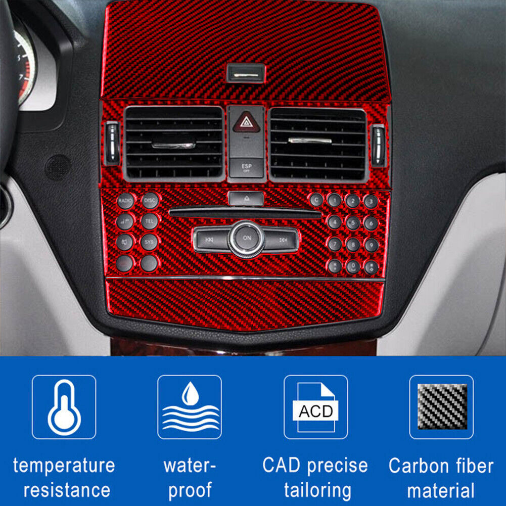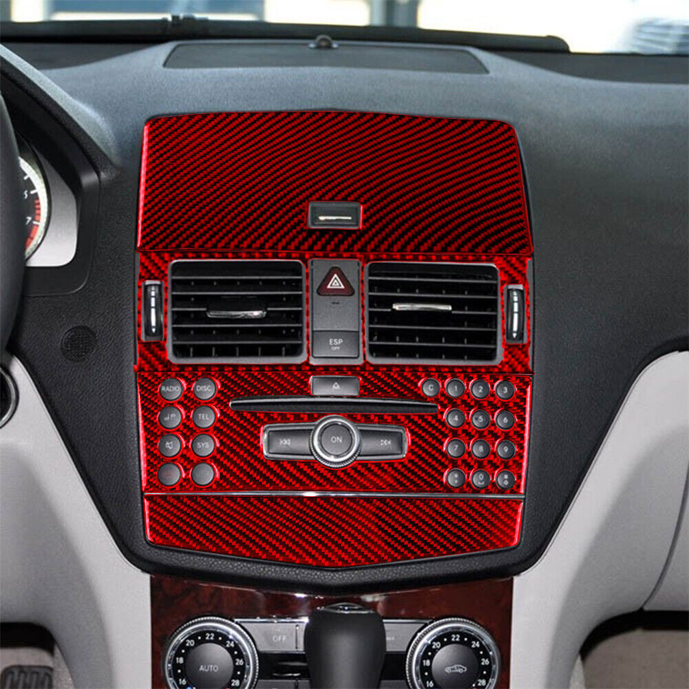 4Pcs Red Carbon Fiber Interior Central Console Cover Trim For Mercedes-Benz W204