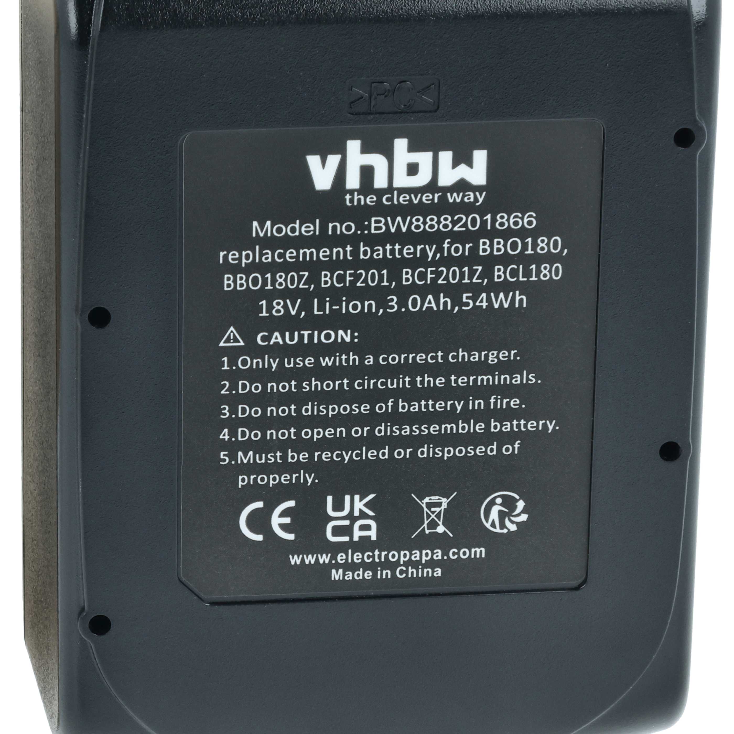 vhbw battery to replace Makita BL1830, BL1820B, BL1840B, BL1840, BL1835, BL1830B, BL1845 for power tool / 18 V Li-Ion batteries; 3000 mAh