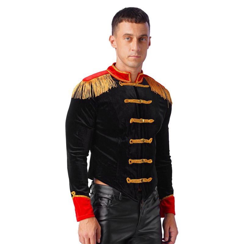 Mens Circu Show Tassel Jacket Velvet Long Sleeve Halloween Ringmaster Costume