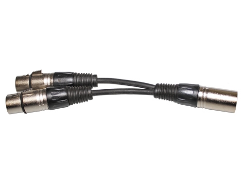 This cable has 1 XLR Male and 2 XLR Female connectors. This Y-Cable is ideal for splitting connection of microphones, A/V electronic equipment and home theater devices. Flexible PVC jacket Nickel-plated connectors provide reliable contact. Rubber strain relief for extended durability.