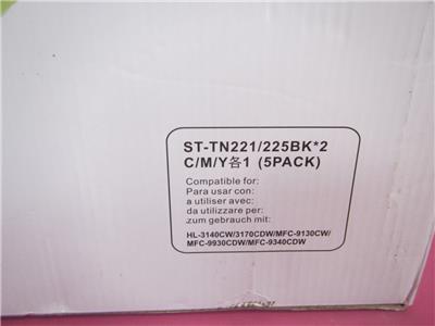 Brother TN221 New Printer Toner Cartridges Black & Color (C/M/Y) are new. A couple of the bags are open but the cartridges inside have never been use. They were purchased for a printer that we no longer have. Comes with 3 black, 1 cyan, 1 magenta and 1 yellow cartridges.