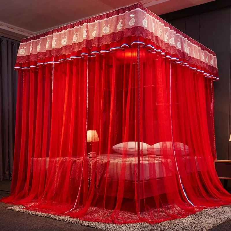 Luxury Princess Canopy Bed Curtain 3 Side Openings Post Bed Curtain Canopy Net Mosquito Net Bedding No Stand Household Goods (No Stand)