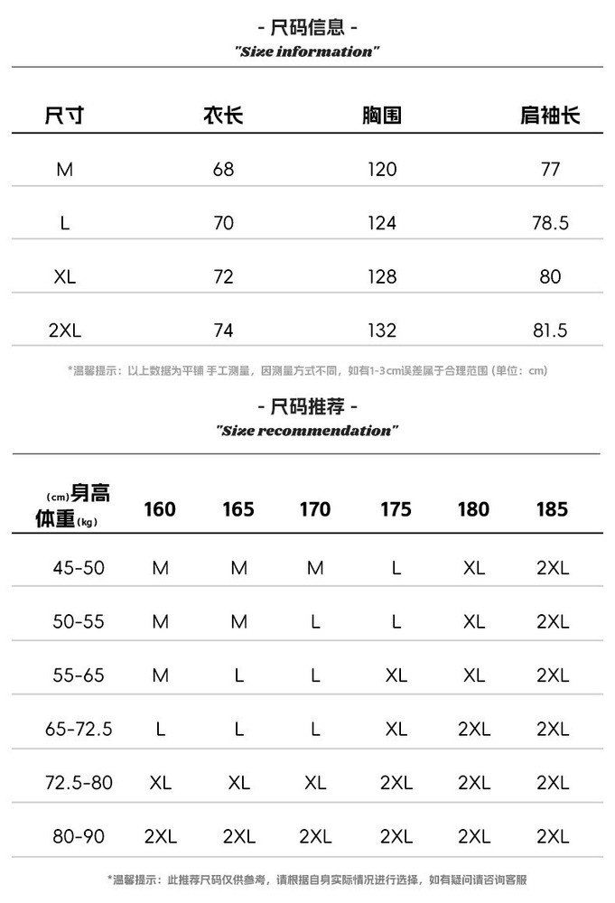 Please note: 1.Please allow a little error due to manual measurement. 2.The color maybe a little difference because of the light,screen reflection etc. 3.If you are not sure what size to choose, you can tell us your height and weight, we will recommend the right size for you.