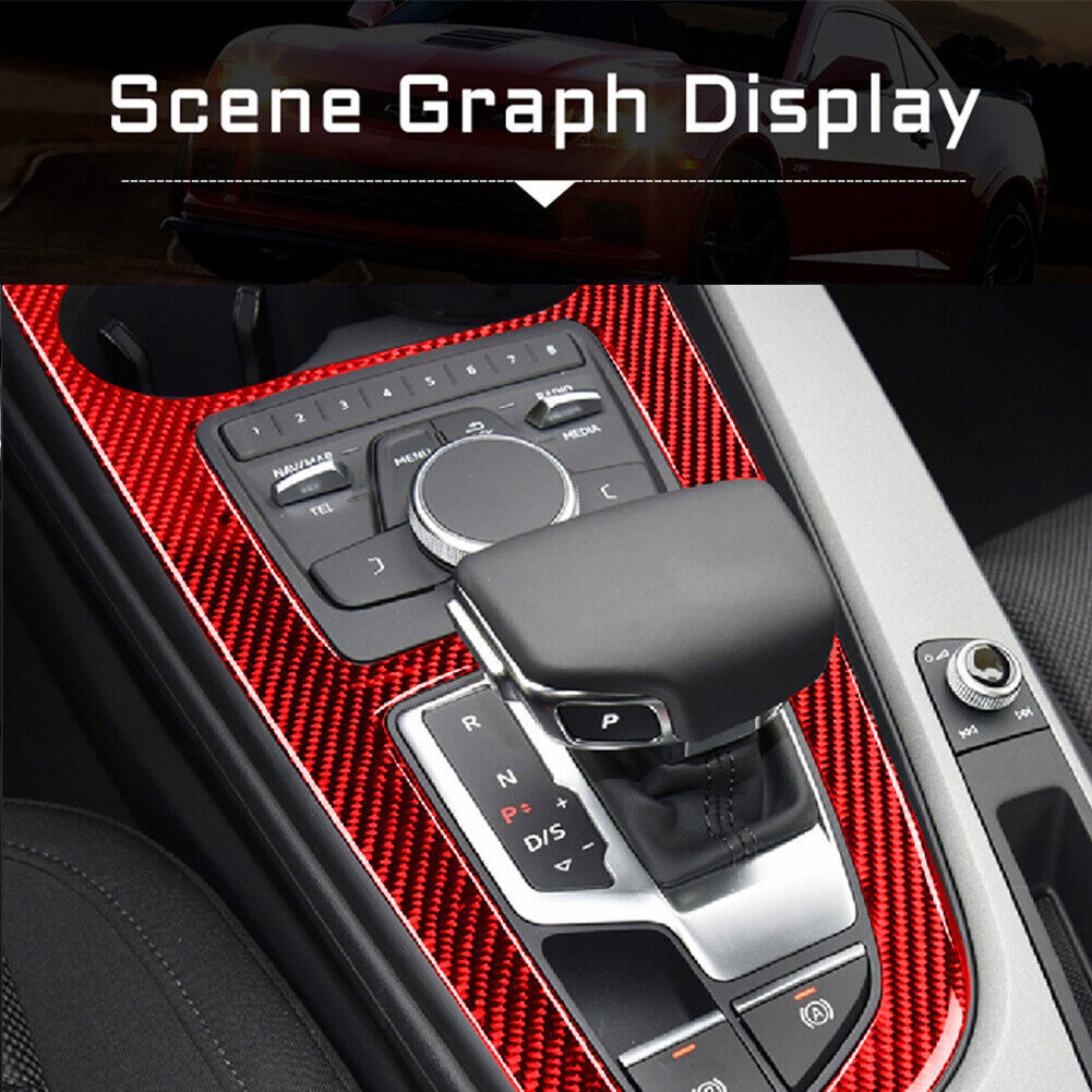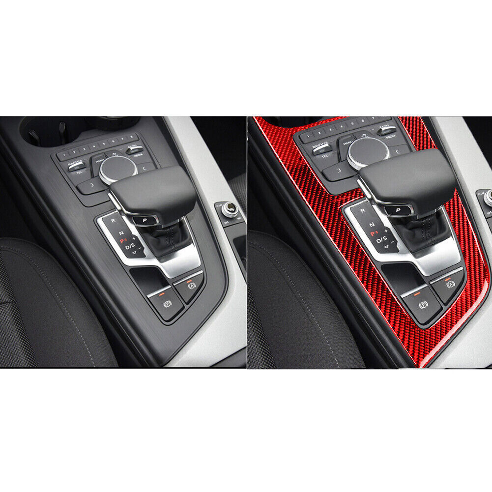 Red Carbon Fiber Interior Gear Shift Panel Cover Trim For Audi A4 B9 2017-2019