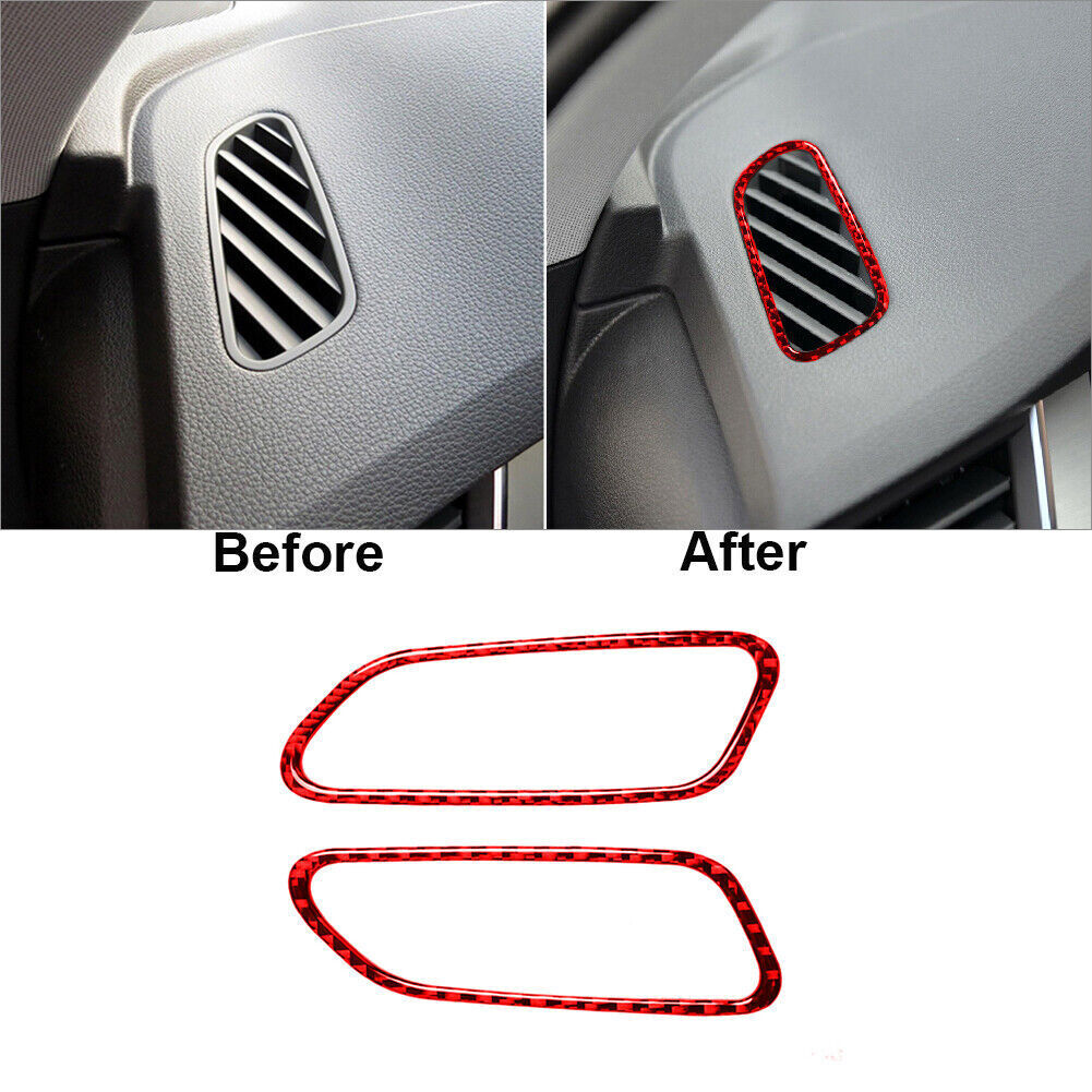2Pcs Red Carbon Fiber Interior Dashboard Air Vent Cover Trim For Audi Q7 2016-19