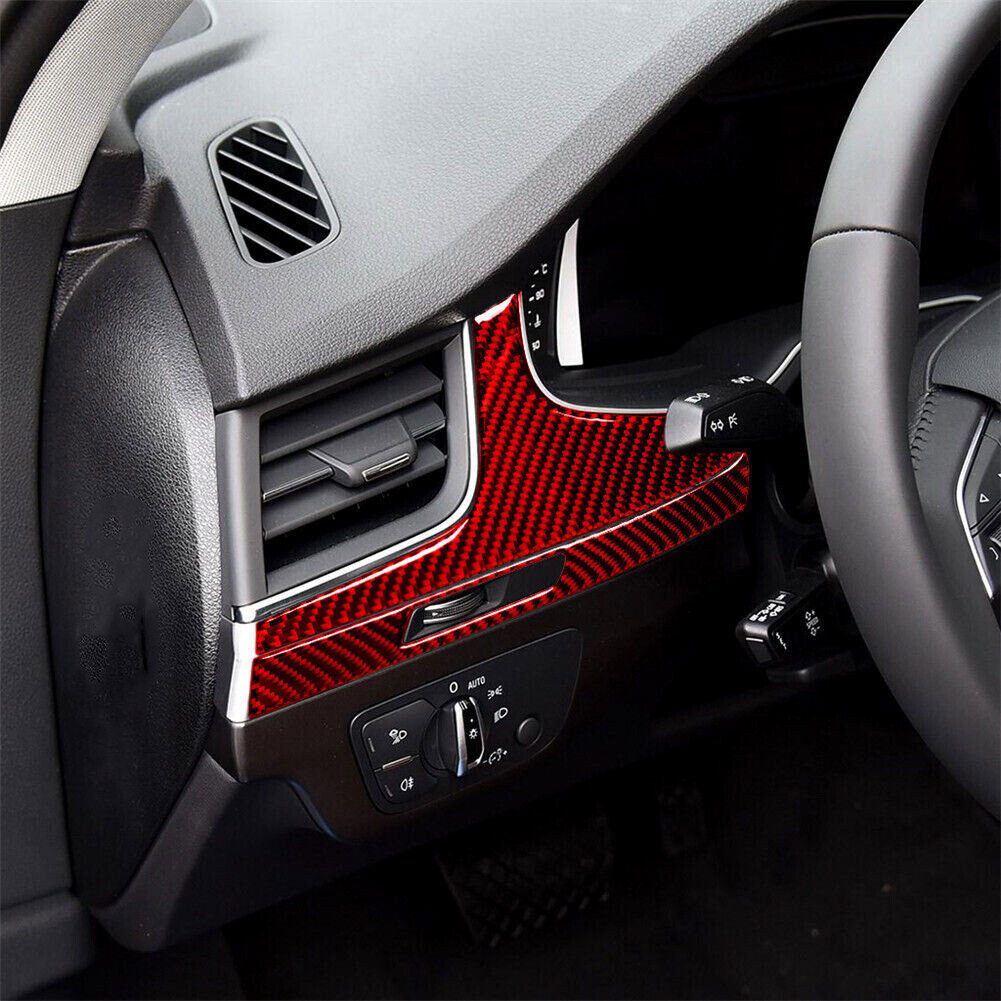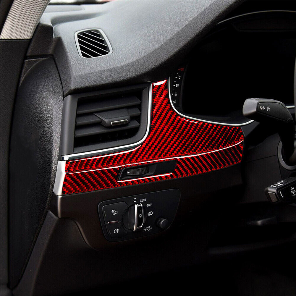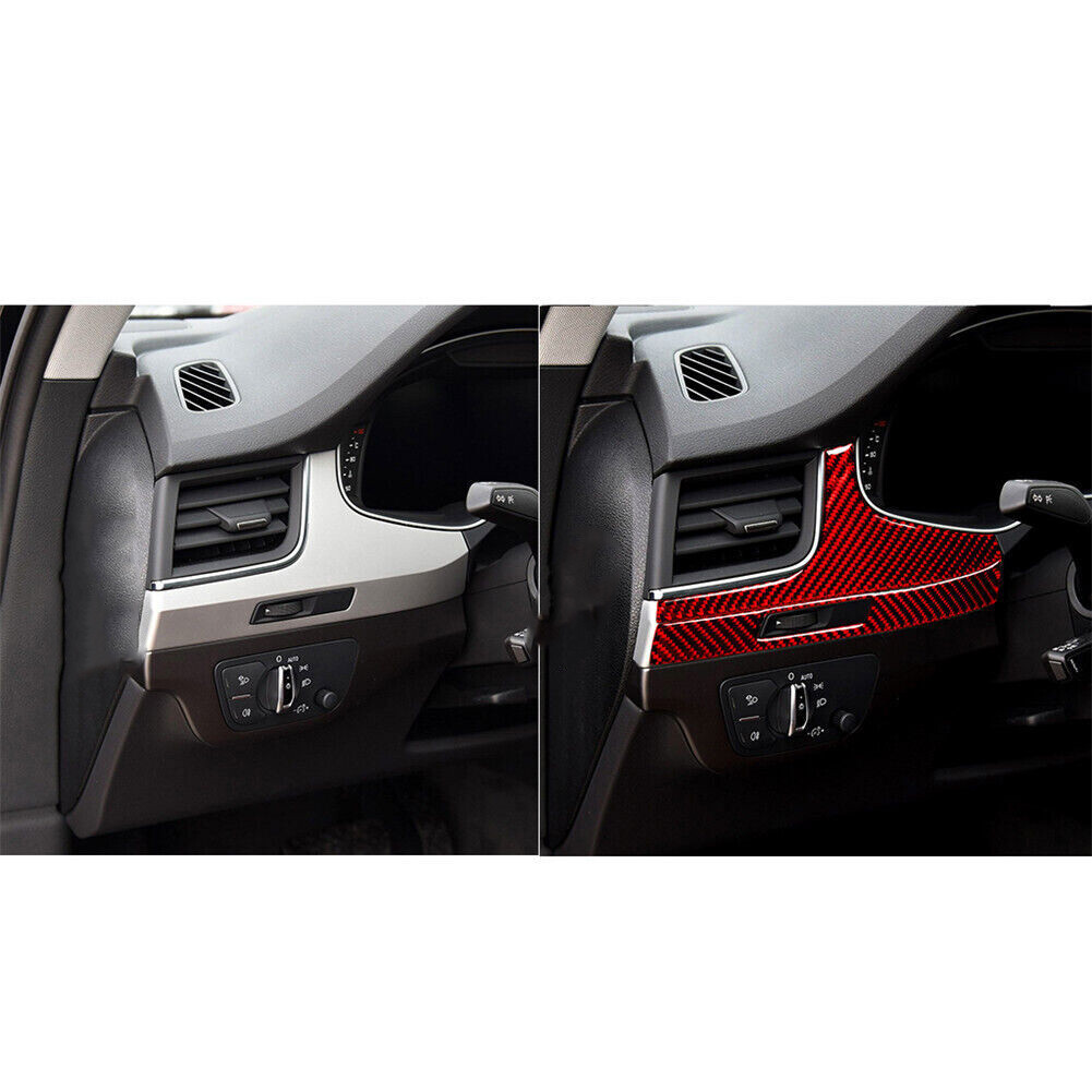 2Pcs Red Carbon Fiber Interior Driver Dashboard Cover Trim For Audi Q7 2016-2019