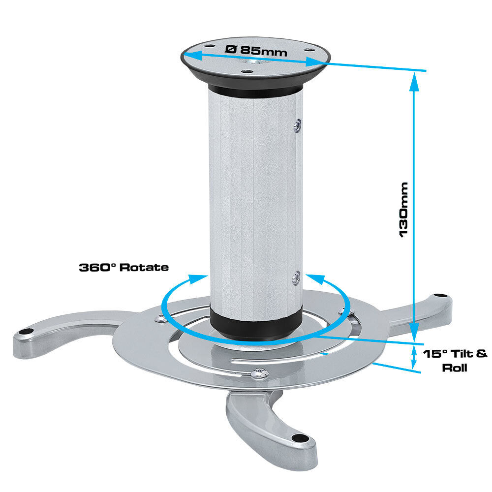 Cmple - Universal Adjustable Ceiling Projector Mount with Tilt & Swivel, Max 22-44lbs (Silver)