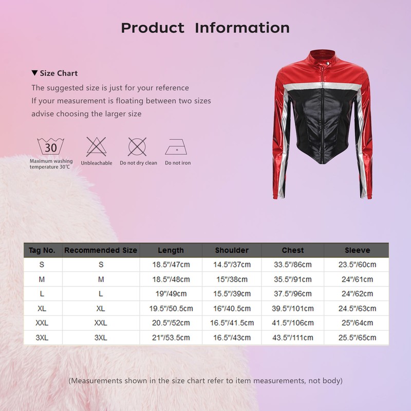 Designed with long sleeve, stand collar with a button, front zip-up, curved hem and cropped length, metallic shiny jacket looks cool.