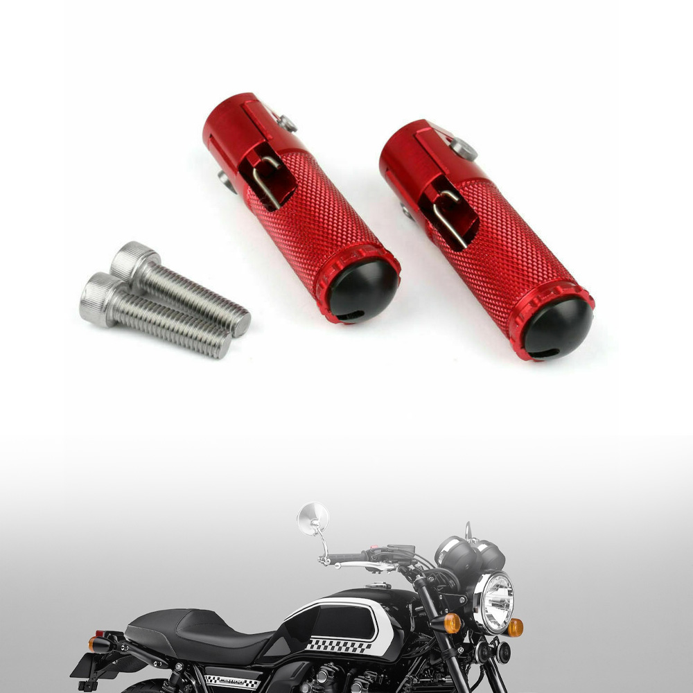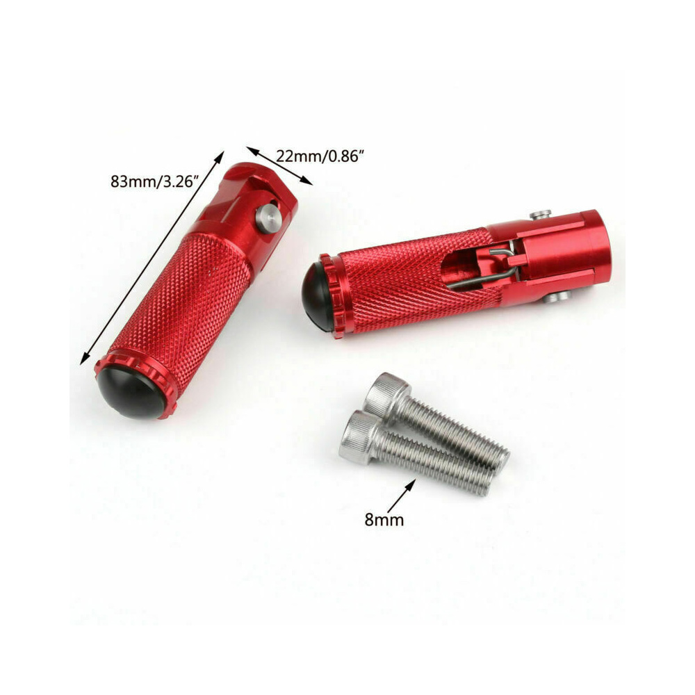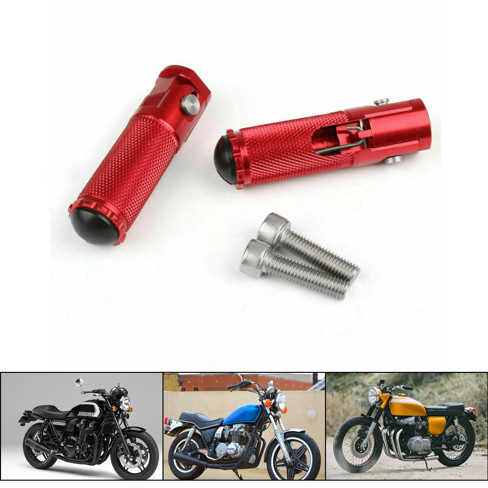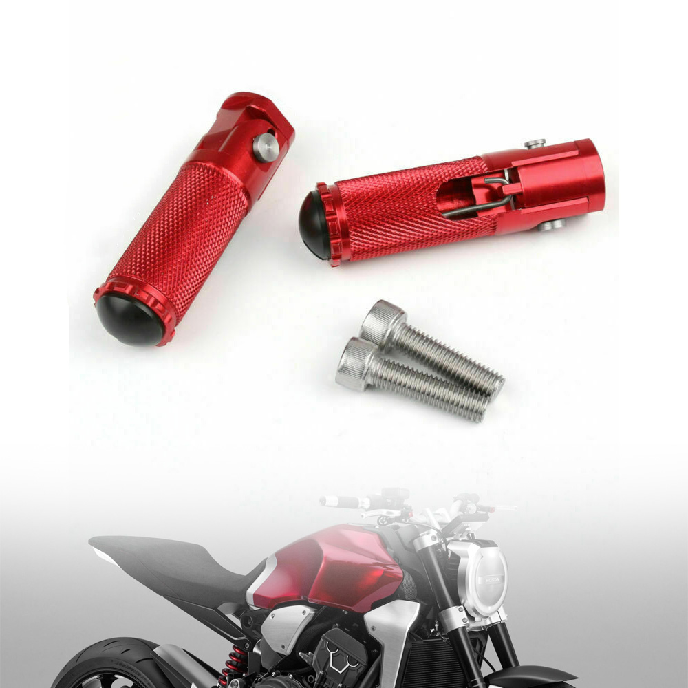 Product Description Condition:Aftermarket 100% New Parts Model : CNC Billet Folding Footpegs For rearset (use 8mm bolts) High Quality Construction Color:Same as picture show. Material: CNC Aluminum Rearsets And All Bolts Made By Stainless Steel Connecting hole:8MM Footpegs Length : 80MM Front foot pegs for Rearset Fully Adjustable To Suit Your Riding Style No install instructions Easy to Install Fitment: Application: Universal fit, Aprilia, Honda, Kawasaki, Ducati, Suzuki, MV plus REARSET Package Included: 1 Pair (2 pcs)