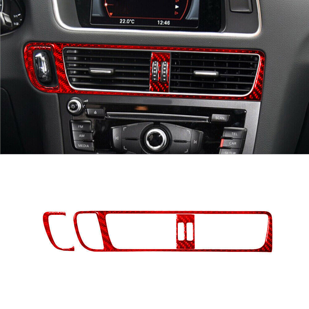 3Pcs For Audi Q5 2009-17 Red Carbon Fiber Interior Center Air Vent Cover Trim
