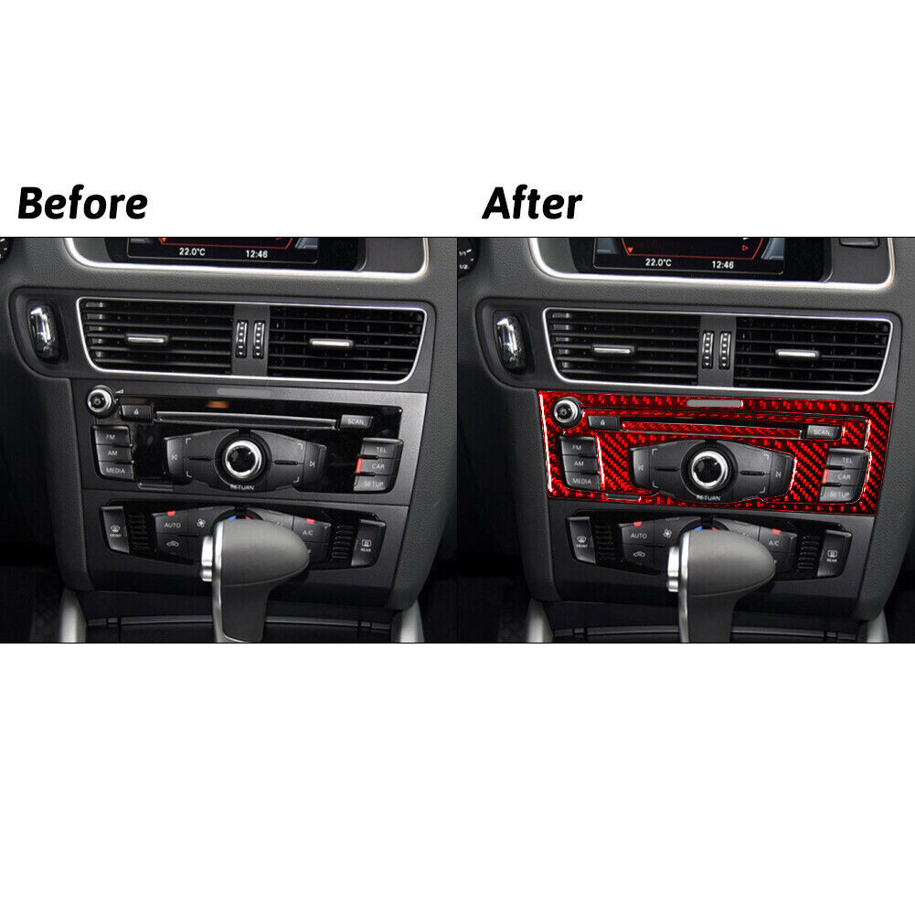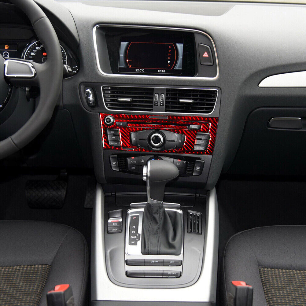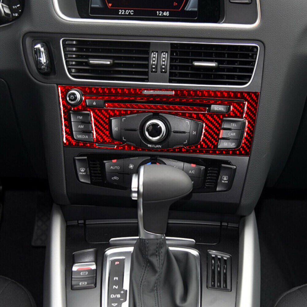 For Audi Q5 2009-2017 Red Carbon Fiber Interior Radio With CD Player Cover Trim