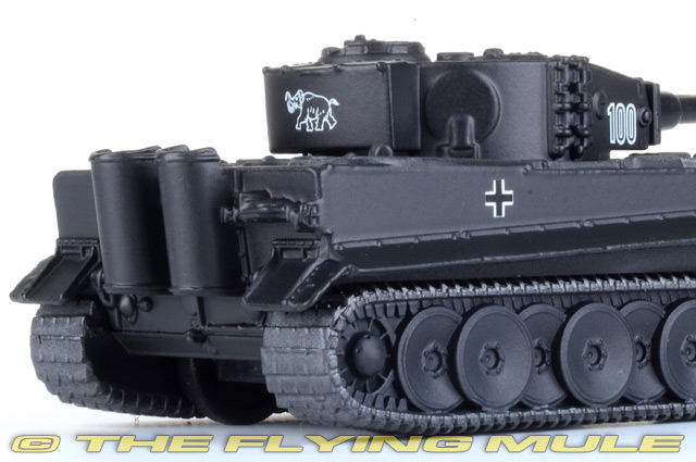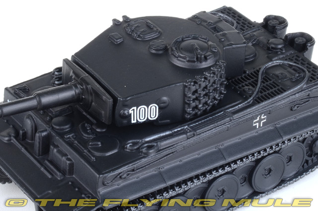 Even though the Panzerkamfwagen VI Tiger heavy tank was only used in relatively small numbers during WWII, its fearsome reputation and sinister appearance ensured it is regarded as the most famous tank of the Second World War. Another tank developed as a result of Wehrmacht experiences on the Eastern Front, the Tiger may not have shared the cultured appearance of the Panther, but this was a war machine pure and simple and one which was devastatingly effective on the battlefield. Heavily armoured and equipped with the powerful 88mm gun, the sighting optics on the Tiger were so effective that enemy tanks could be destroyed at great distances and well before they were in range to return fire. By the time of the D-Day landings, the reputation of the Tiger was already assured, but even though they managed to inflict heavy losses on Allied armoured units, their small numbers were swamped by an overwhelming tide of Allied armoured numerical superiority. Unable to control the battlefield, damaged and unserviceable Tigers were simply abandoned to be captured by advancing Allied troops. Spz.Abt.502 Heavy Tank Battalion is distinguished by the fact that it was the first to deploy the new Tiger 1 in combat. Formed in August 1942, the battalion arrived at the Leningrad front and soon began to use its Tigers in battle. The turret carries the unit's famous mammoth insignia. Henschel Sd.Kfz.181 TigerProduction of the Tiger began in August 1942, and by August 1944 1,355 of these tanks had been built. The 88mm main gun was the most powerful anti-tank gun in use by any army. The superior mobility of Allied tanks allowed them to attack from behind or from the side in the hope of taking a Tiger down. The influence of Tiger tanks on allied morale grew to almost mythical proportions, and was known as "Tigerphobia." Tigers destroyed tremendous amounts of enemy equipment and often just the sight of a Tiger would induce the Russian tankers to withdraw.© Copyright 2003-2025 The Flying Mule, Inc. Corgi Showcase CollectionThe Corgi "Showcase Collection" range presents affordable, ready-made diecast models of military vehicles.Corgi "Showcase Collection" diecast vehicles feature: