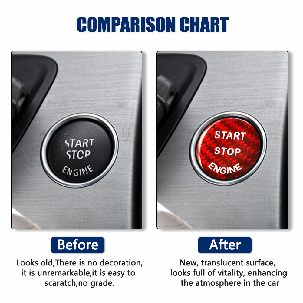 Red Carbon Fiber Engine Start-Stop Button Cover Trim For BMW 3/5Series Universal