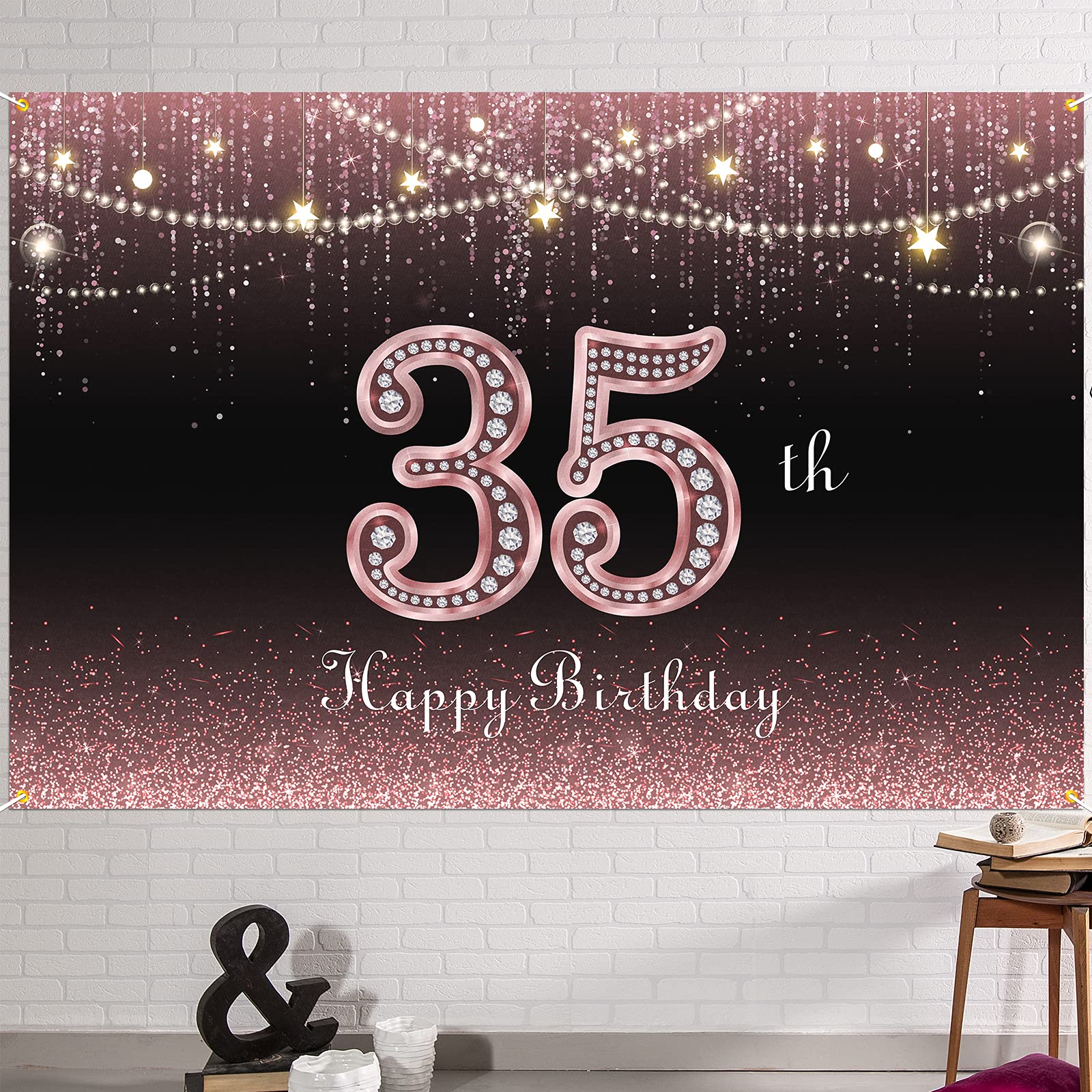 PACKAGE INCLUDED 1 piece birthday banner (6.9 x 1.3ft) 1 piece birthday banner (6.1 x 3ft) Several strings for hanging PRODUCT DETAILS Lightweight material, having 4 holes with gold frames at corners, which makes it very easy and convenient to hang up. PERFECT SIZE Our backdrop can play a good role in photo booth or home wall decorations because of its appropriate size and beautiful design. GREAT DECOR With the high definition printing technology, the banner will be a light in your birthday party and leave a good memory for everybody.