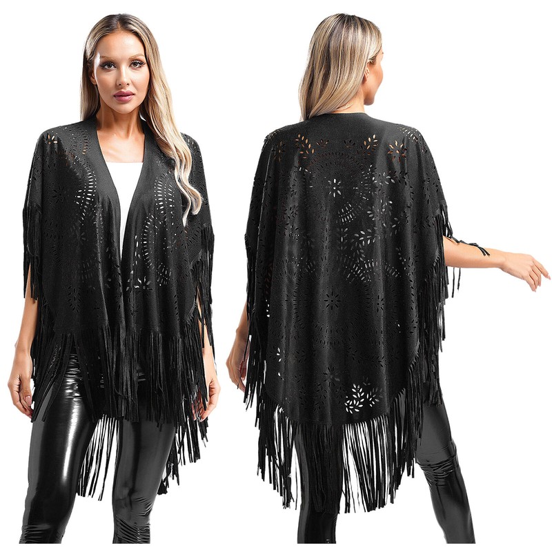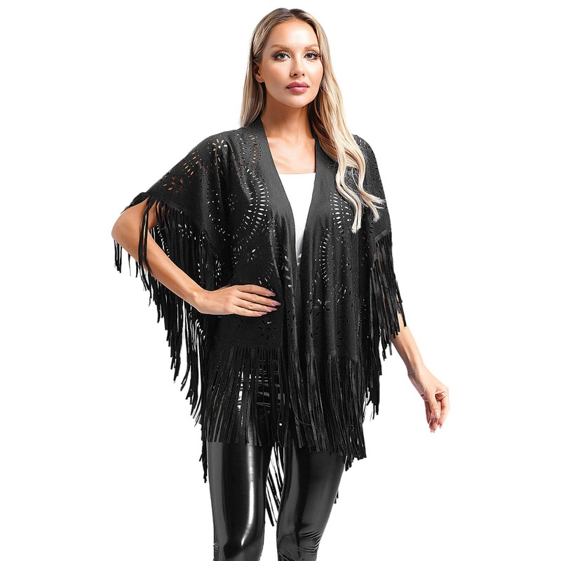 Soft and comfortable fabric, the tassels open front cape is stylish and versatile, available in a variety of colors.