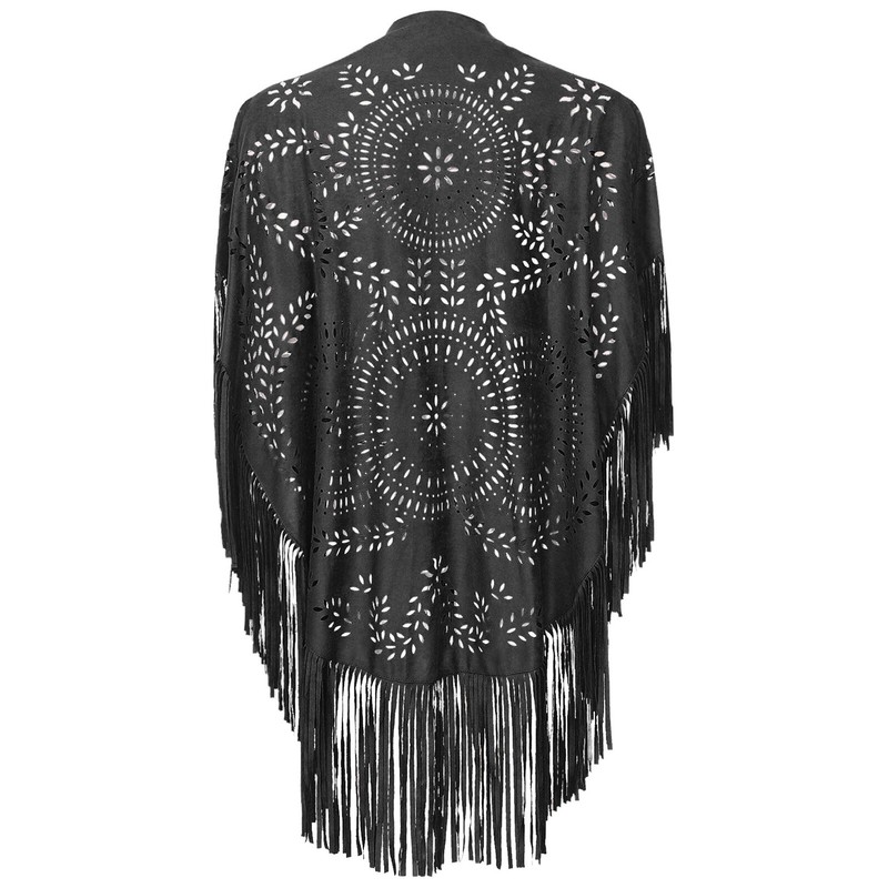 Hollow out faux suede cape for women with asymmetrical tassel makes you look more beautiful and charming.