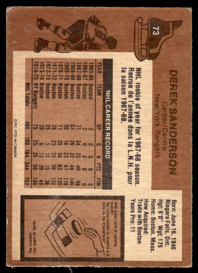| 1975-76 O-Pee-Chee Derek Sanderson St. Louis Blues #73 |
