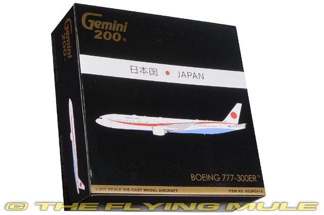 Boeing 777-300ERDesigned as a wide-bodied, twin-engined airliner to compete with the Airbus A330/A340 and the McDonnell Douglas MD-11, the 777 was first flown on June 12th, 1994. A pair of the world's largest diameter turbofan engines power the aircraft which currently holds the record for world's largest twin-engined airliner. The 777 was Boeing's first fly-by-wire airliner, featuring complete glass cockpit displays and flight envelope protection. Standard varients have a range of 4,200 nautical miles while Extended Range (ER) variants can fly for 6,600 nautical miles and the Longer Range (LR) variant is the world's longest range airliner capable of flying 7,800 nautical miles.© Copyright 2003-2026 The Flying Mule, Inc. Gemini's 1:200 scale Boeing 777 is a large model in this scale and is constructed almost entirely of solid diecast metal. The wide-body fuselage features a solid all around seamless construction with pad-printed windows and doors, fine photo-etched antennas and glimmering jewel-cut anti-collision lenses on top and bottom. The model is supported on an all metal fixed landing gear with a steerable nose wheel, separately applied landing light lenses and pivoting main gear bogies. The solid metal wings feature accurately replicated flap track fairings and free spinning highly detailed fan blades inside each engine nacelles. © Copyright 2003-2026 The Flying Mule, Inc. GeminiJets Gemini 200The GeminiJets "Gemini 200" range presents higly-detailed, ready-made diecast models of civilian and military aircraft in 1:200 scale. Prized by collectors worldwide, Gemini define the benchmark by which other 1:200 aircraft brands are judged.GeminiJets "Gemini 200" diecast airplanes feature: