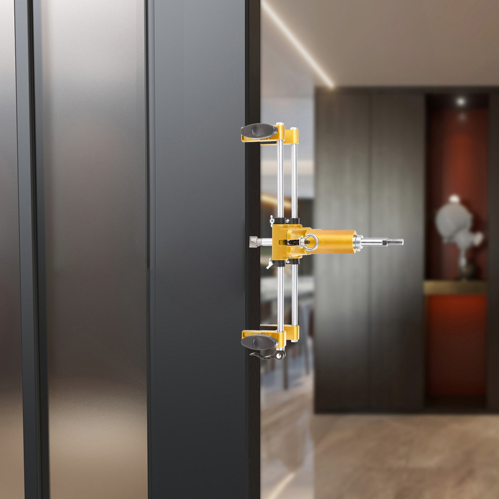 Optimum Performance: Designed with a silicone dustproof and shockproof cover, this Door Lock Hole Opener Kit prevents wood chips from entering the bearing slider and causing jamming. The peripheral positioning screws enable convenient and accurate positioning while effectively controlling the opening distance.