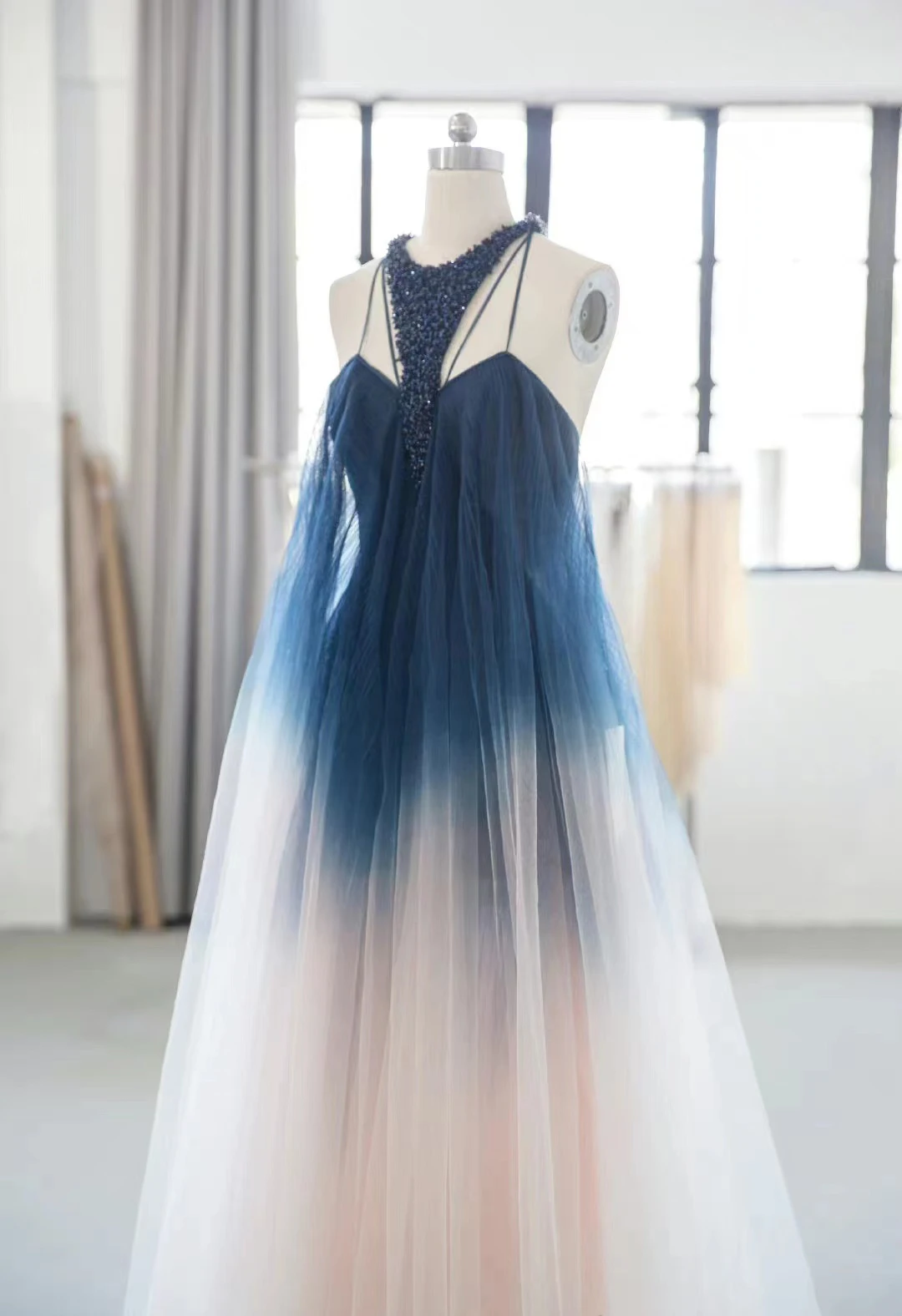 Luxury A Line Beaded Tulle Wedding Dresses Halter Neck Sleeveless Bridal Gowns