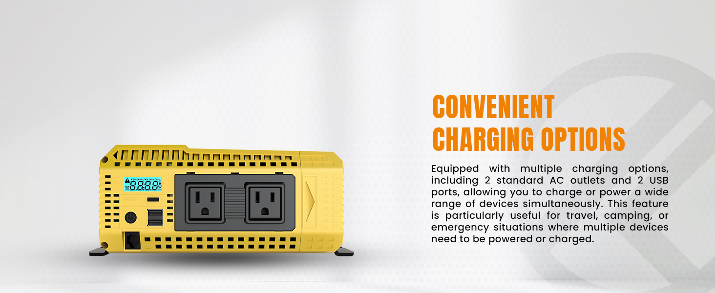This heavy duty Power Inverter connects directly to a 12 Volt DC battery to power hand held power tools, televisions, gaming consoles, home electronics and small appliances in your vehicle. This unit also features an LCD display, which shows the output wattage or input voltage and battery level. With this inverter, you will never be left without power when you need it!