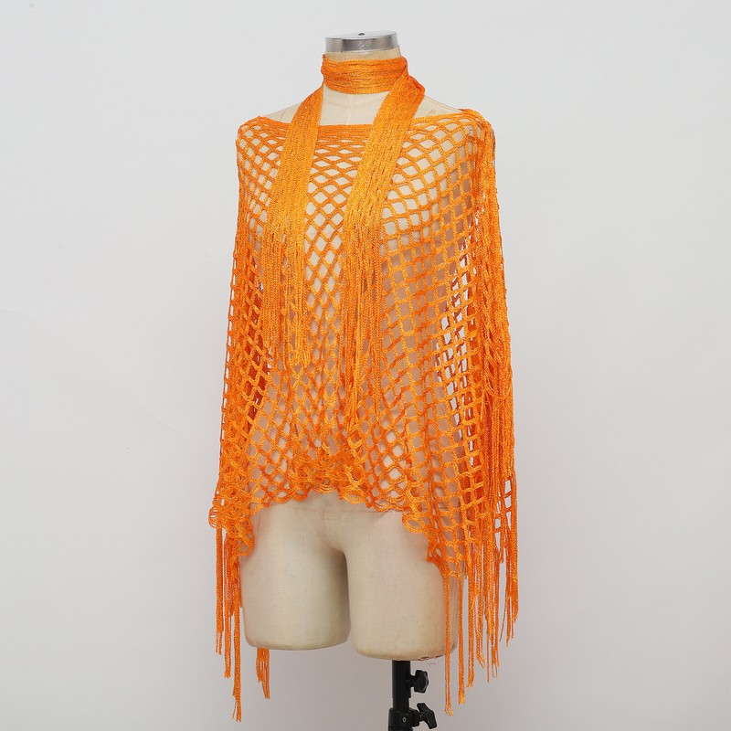Womens Fishnet Cape Nightclub Scarf Soft 2-piece Set Sexy Cloak Tassel Travel