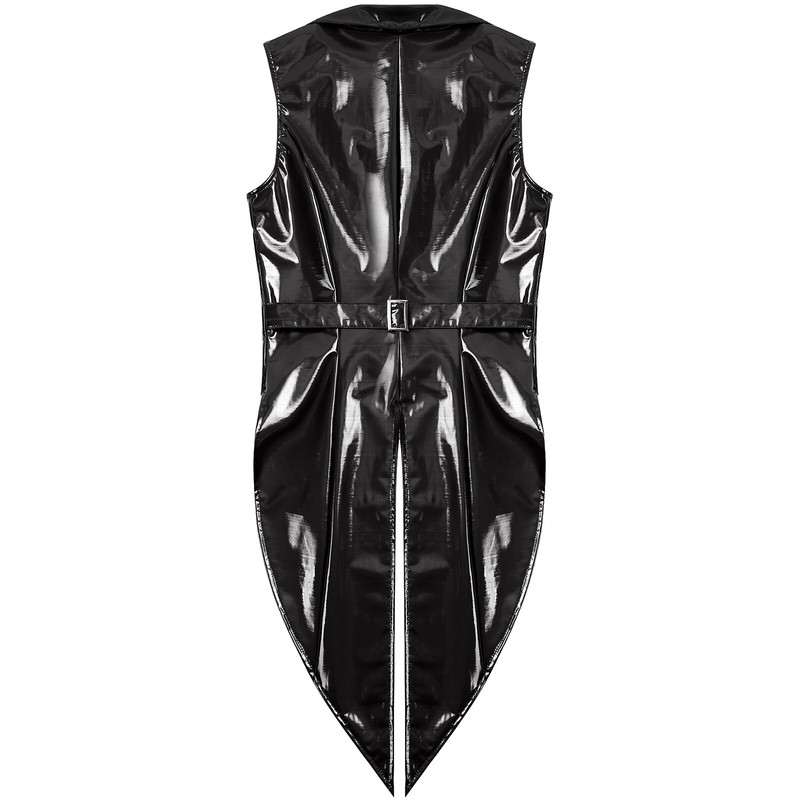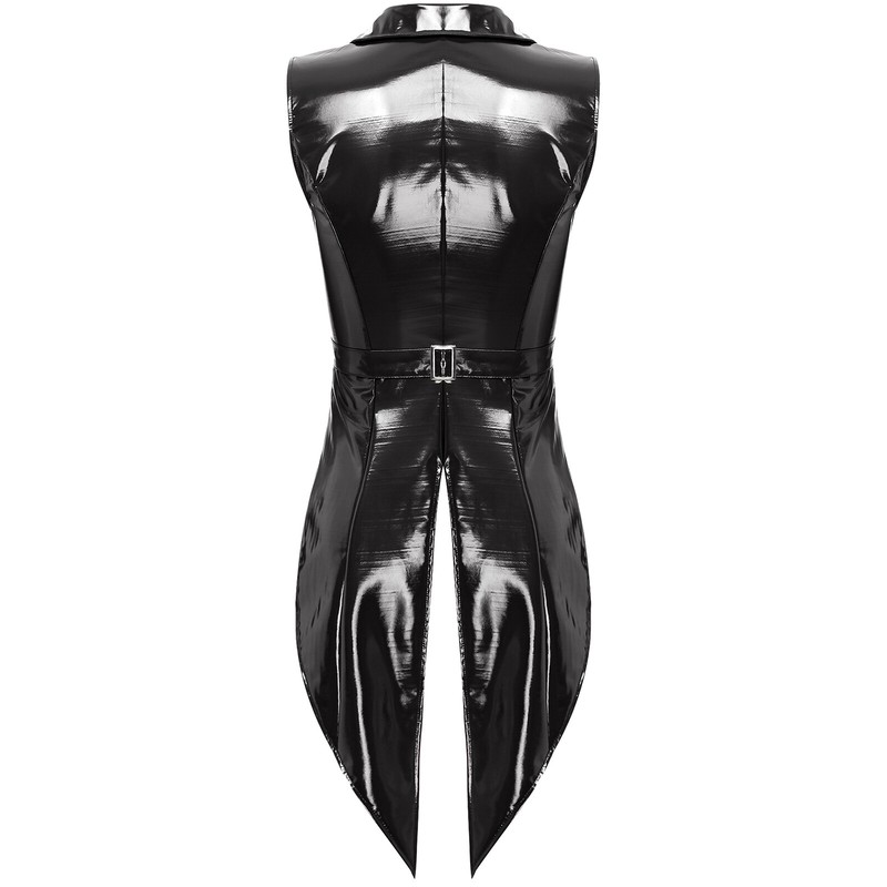 Oil-shiny patent leather brings wet looking and endless wild sense, creating vintage gothic style. The vest tailcoat is perfect for cosplay party.